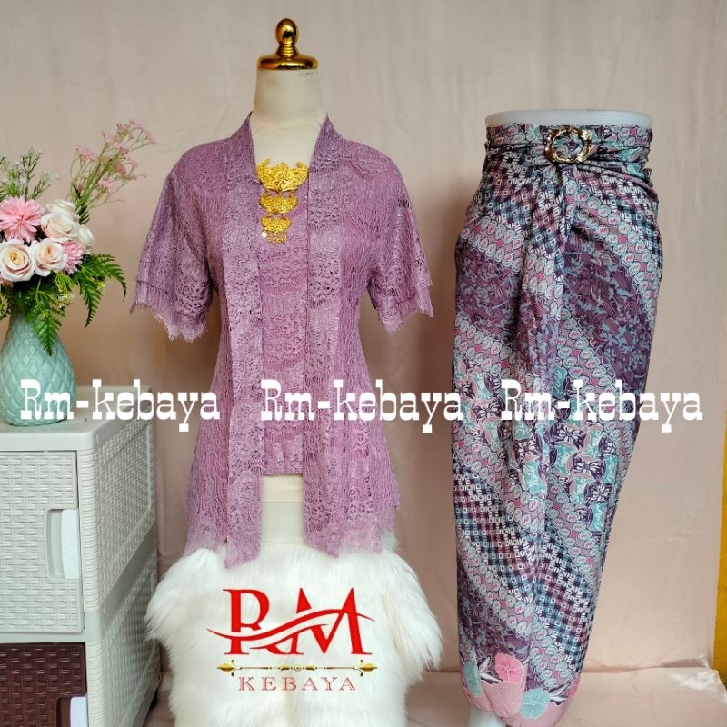 STELAN KEBAYA BROKAT KUTU BARU MODERN / STELAN KEBAYA BROKAT ROK LILIT BATIK / KEBAYA BROKAT RENDA KUTU BARU LENGAN PENDEK / KEBAYA WISUDA / ATASAN KEBAYA