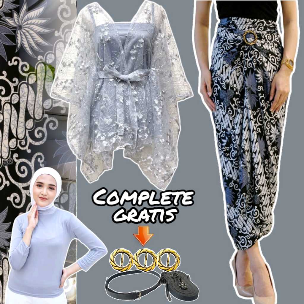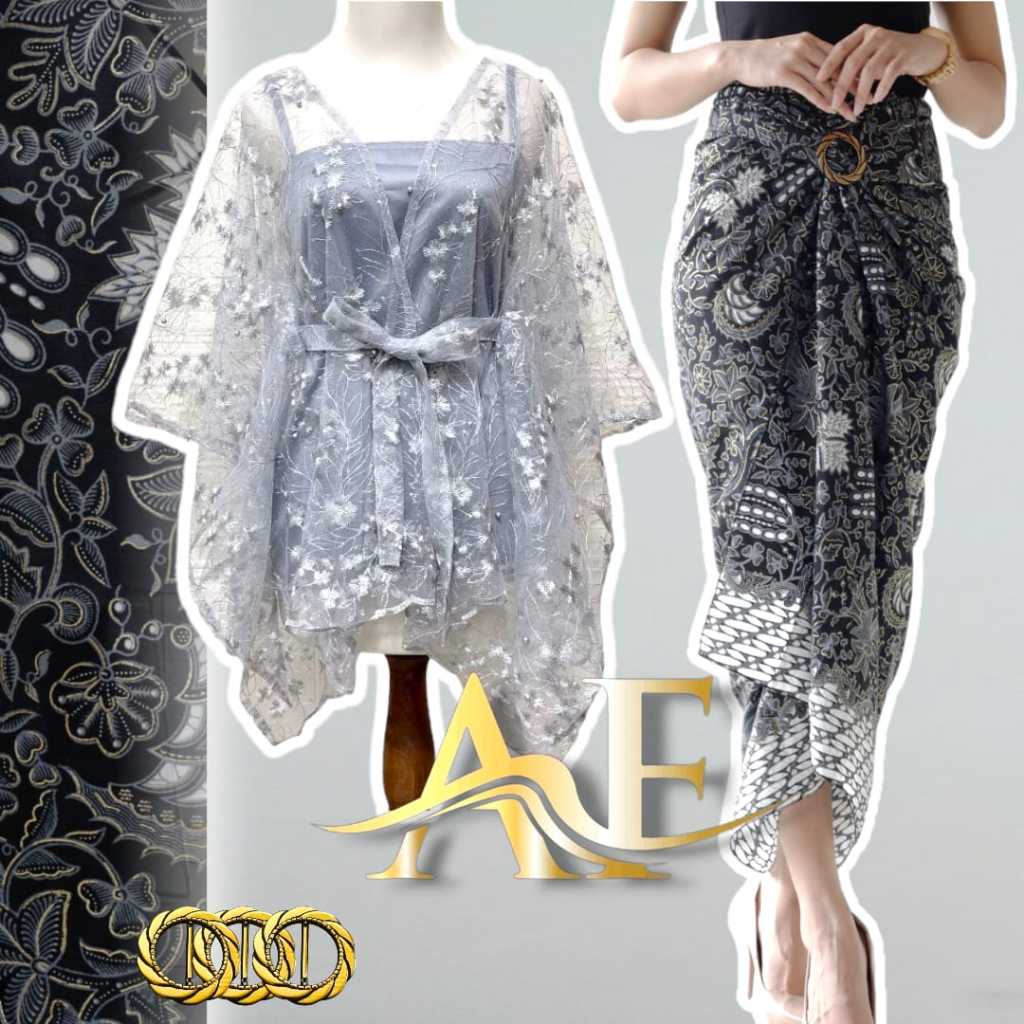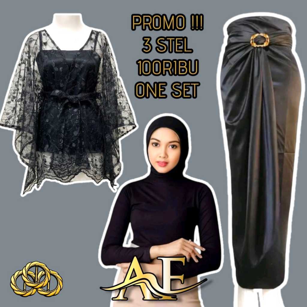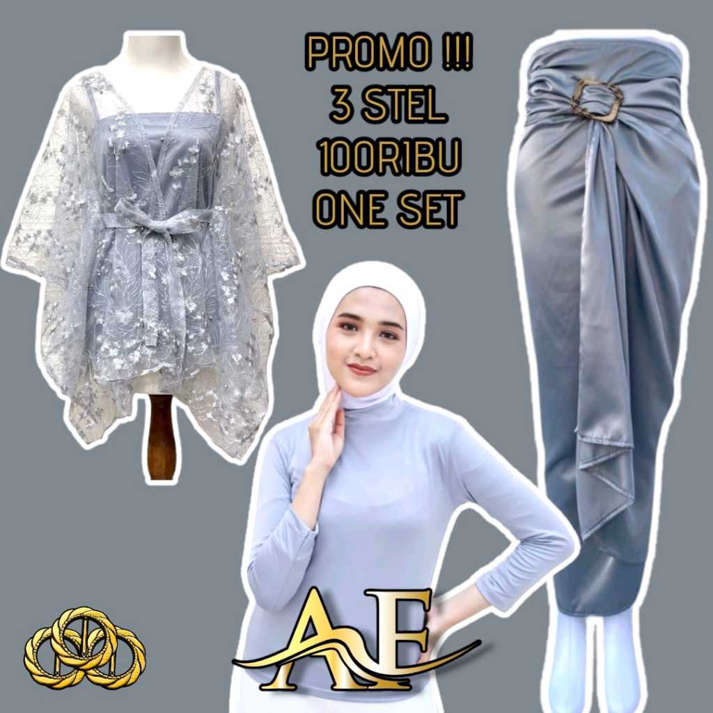 BAJU ONE SET KONDANGAN WANITA KEKINIAN KEBAYA MODERN GHINA OUTER CARDI BRUKAT DAN ROK LILIT SATIN UNTUK KONDANGAN