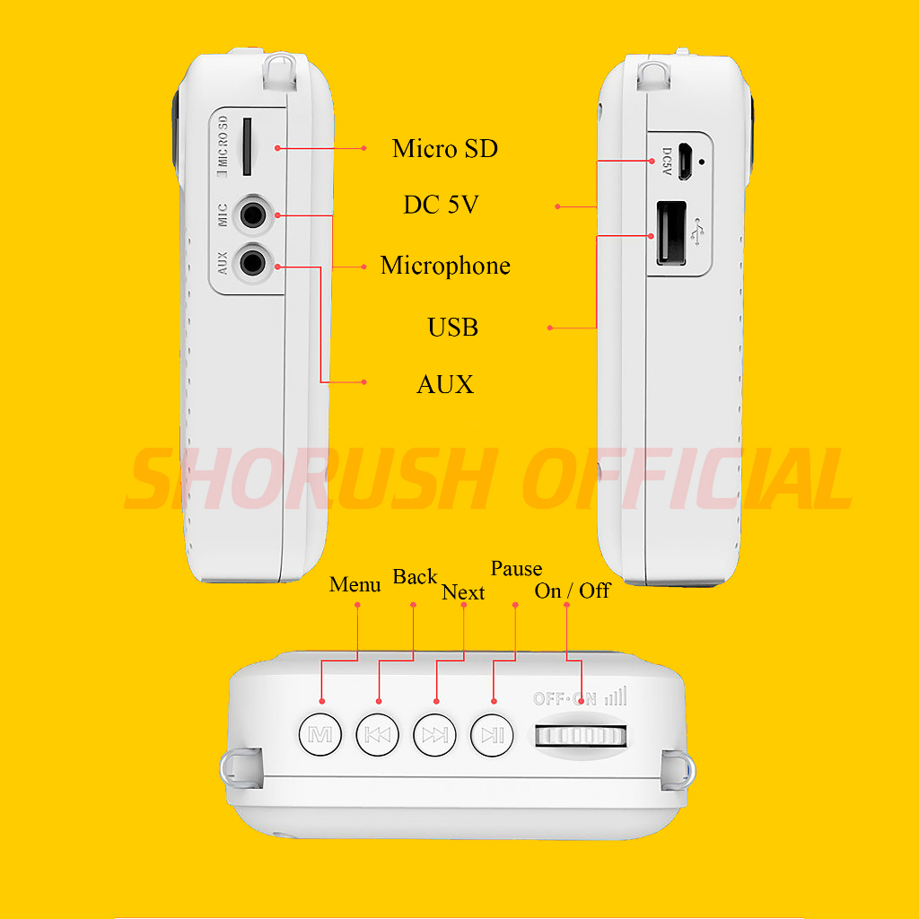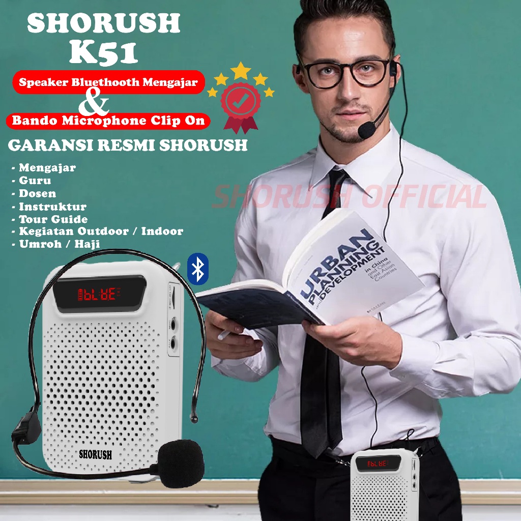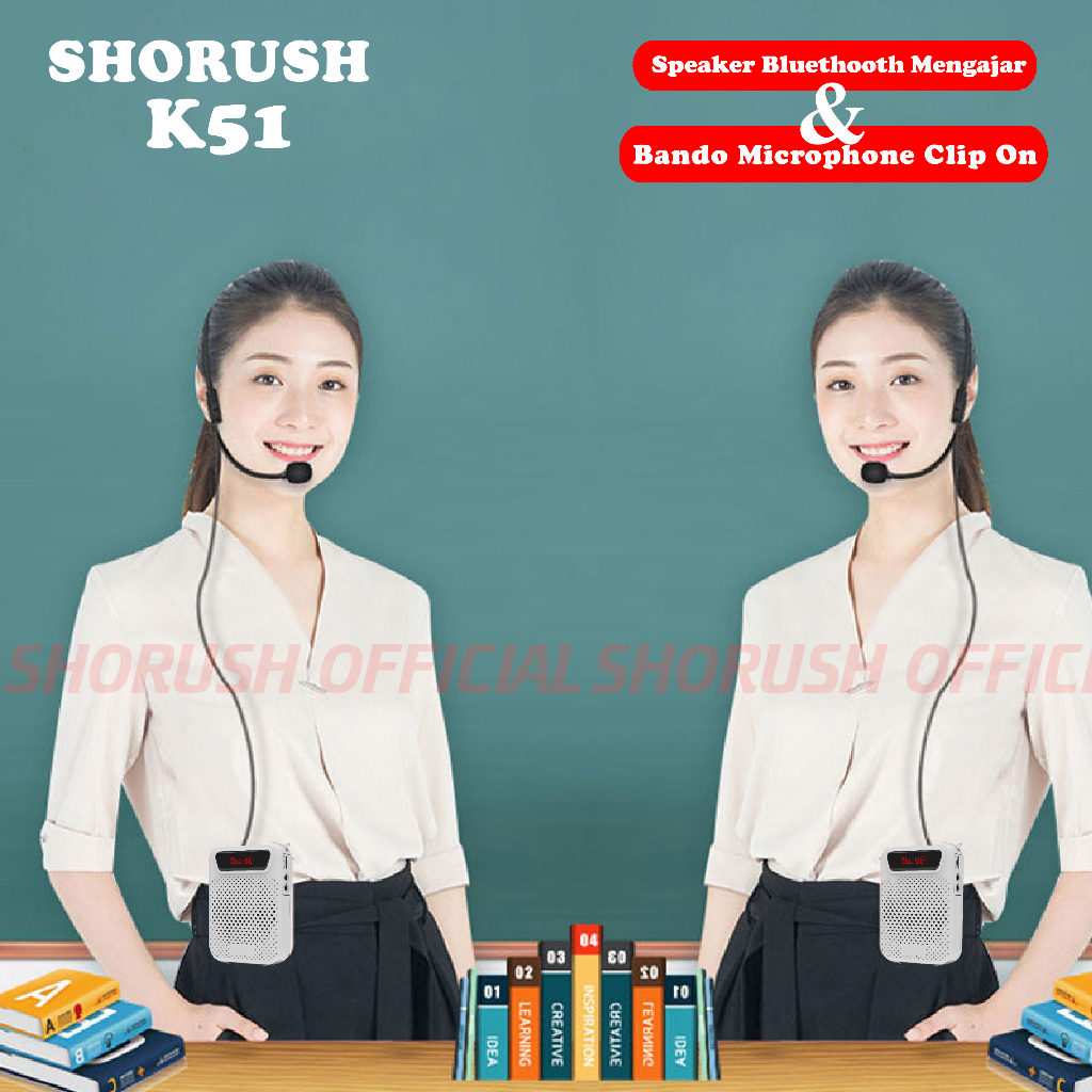 Shorush K51 Speaker Ikat Pinggang Portable Mini Bluethooth Dengan Microphone Mic Clip on Bando Pengeras Suara Untuk Guru