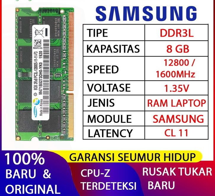 RAM NB SAMSUNG DDR3L 8GB 12800 / 1600MHz LAPTOP / NB SODIMM PC3L SAMSUNG ORIGINAL