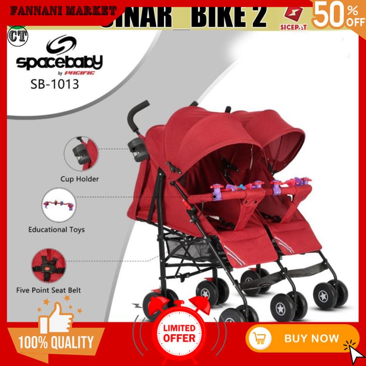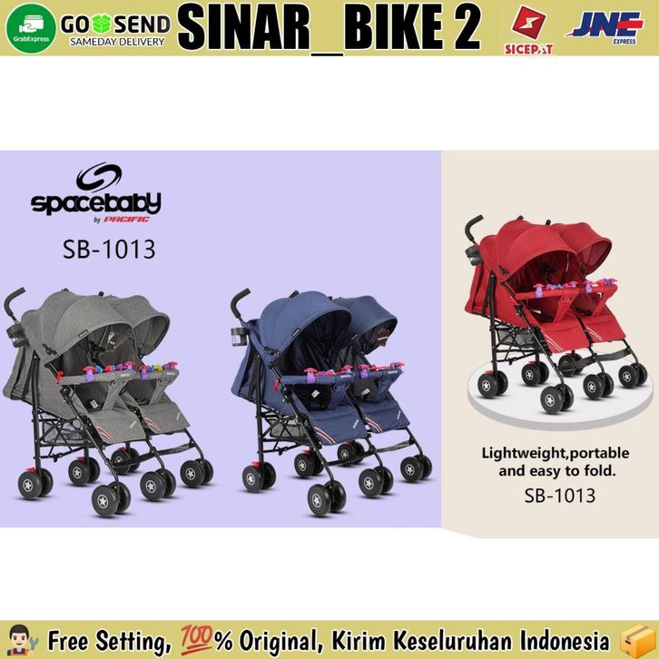 Baby Stroller SPACEBABY SB 1013 Twins Kembar Kereta Dorong Anak Bayi Kanopi Rem Roda Enam