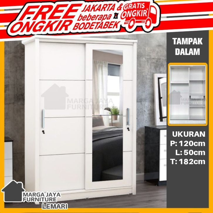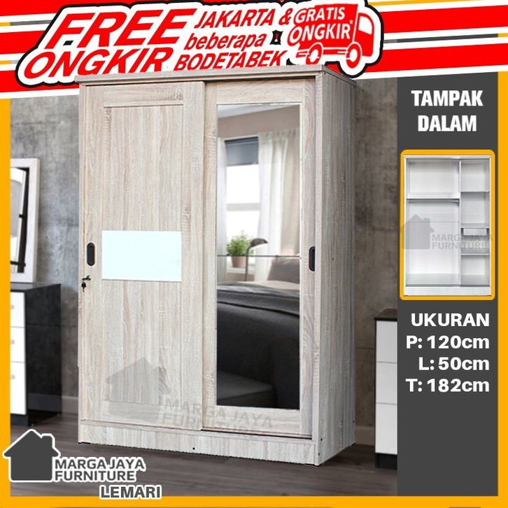 TERLARIS Lemari Pakaian 2 Pintu Sliding Geser Kayu Partikel Minimalis TERBARU