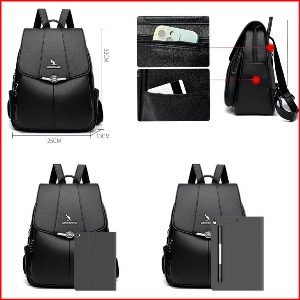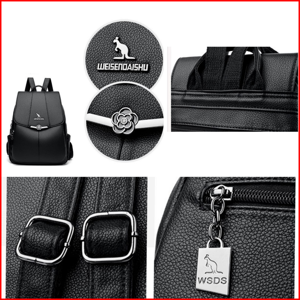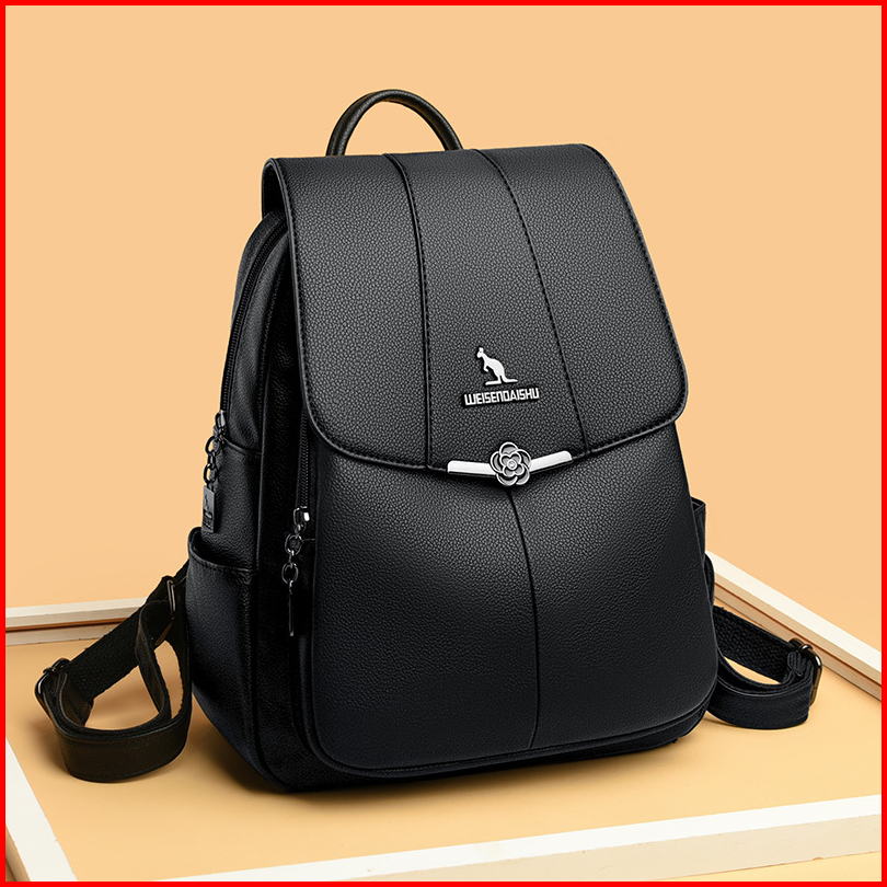 Tas Ransel Wanita Kulit Premium Hitam Yorliana Ta914b5 Backpack Cewek Sekolah Kuliah Kerja Gendong Punggung Remaja Kekin