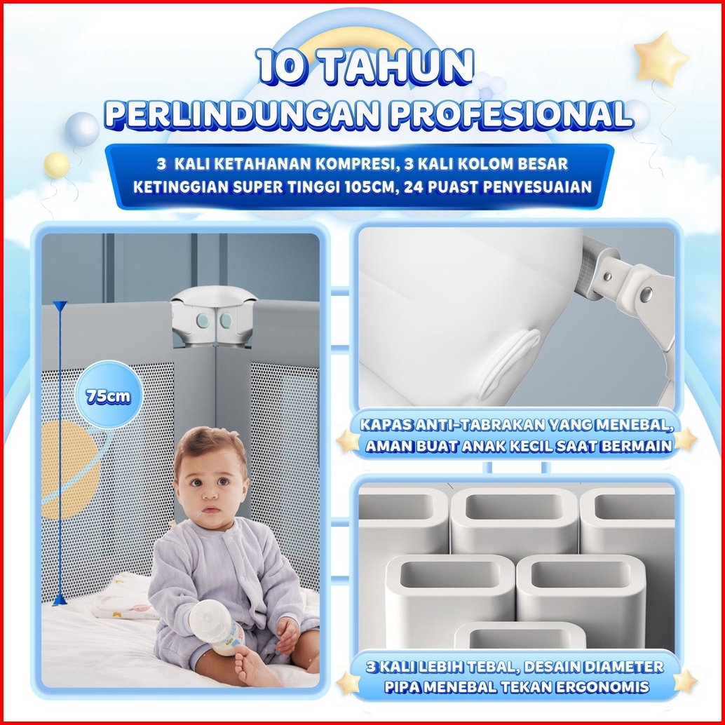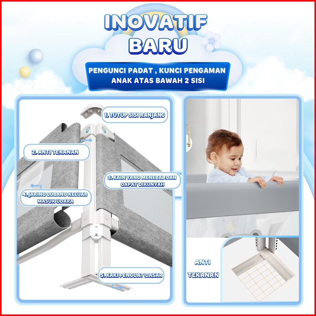 Garansi 4 Tahun Tinggi 105cm Baby Bedrail Baby Bed Guard Pagar Tempat Tidur Bayi Baby Bedrail Ranjang Pengaman Kasur Tem