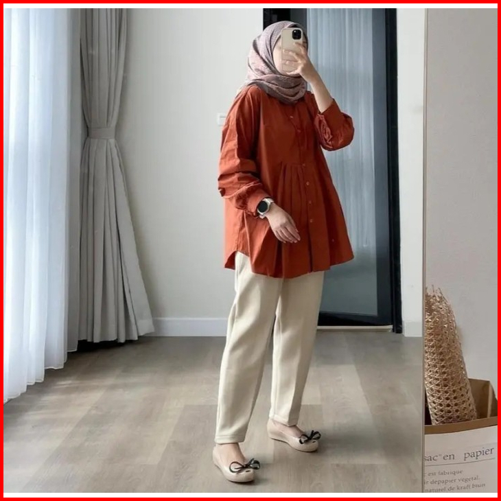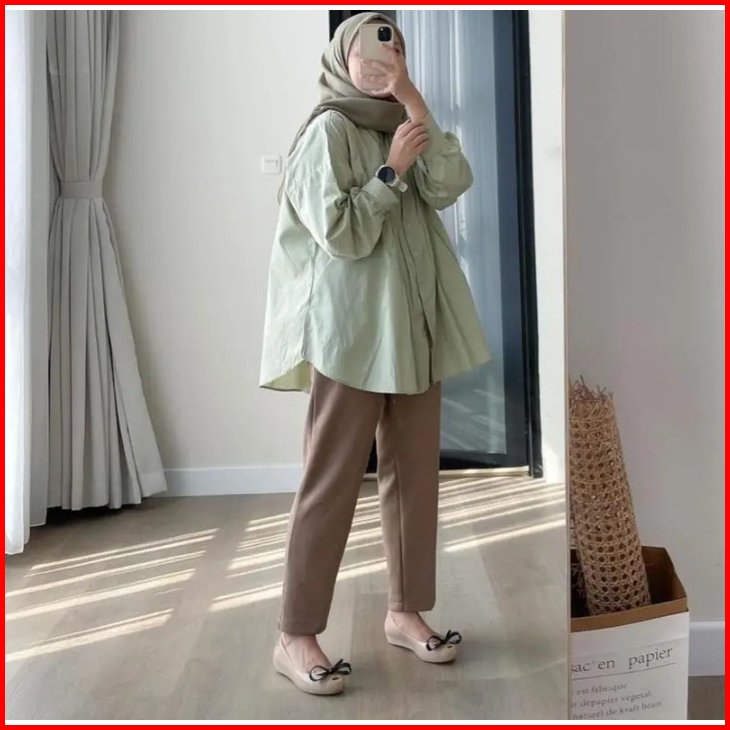 Kemeja Wanita Linen Oversize Lengan Panjang - Atasan Blouse Wanita - Blouse Wanita - Baju Wanita