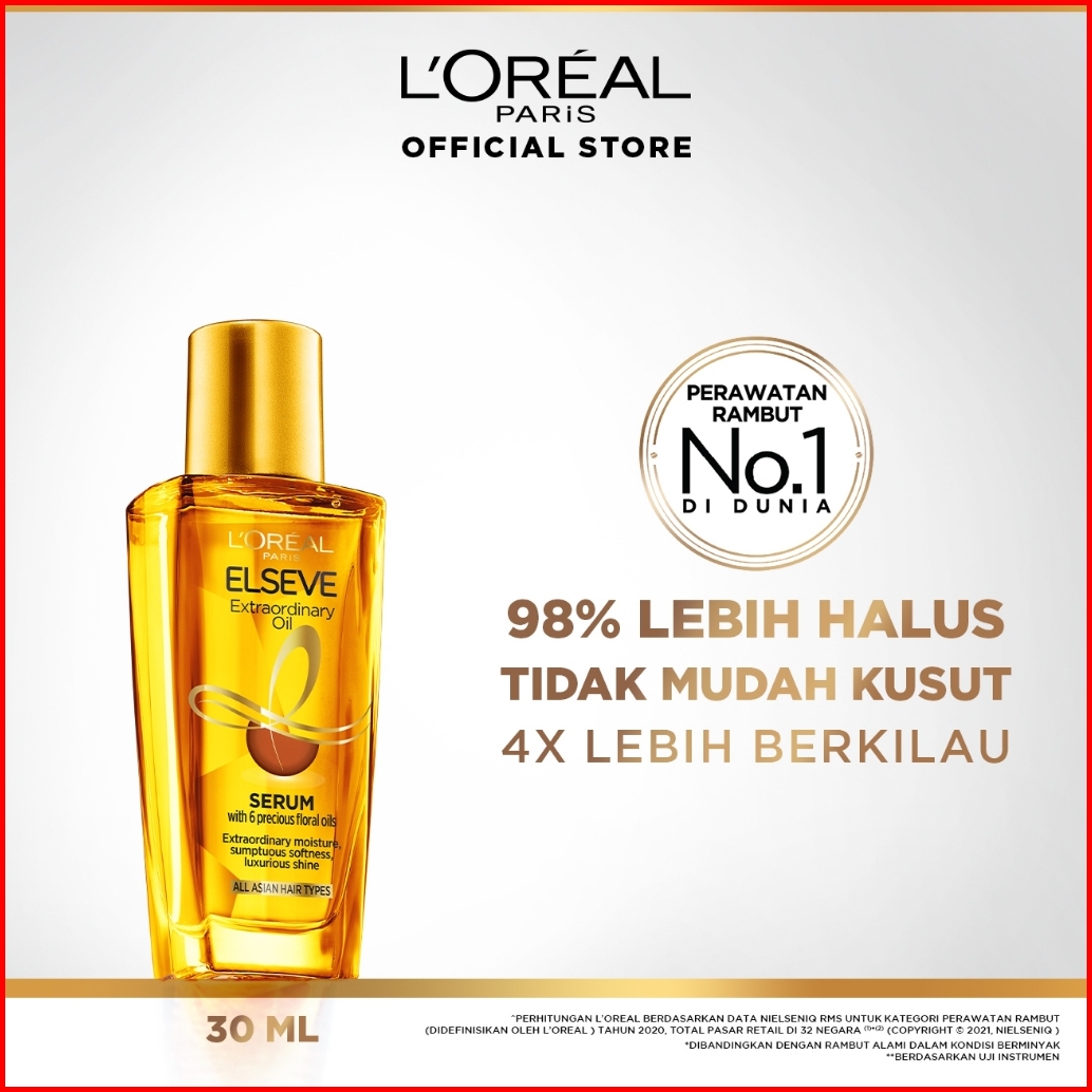 L Oreal Paris Elseve Extraordinary Oil Hair Treatment Serum 30ml - Rambut Halus Berkilau Dalam Satu Pemakaian - Dari Bun