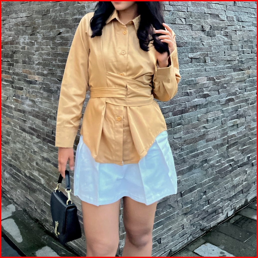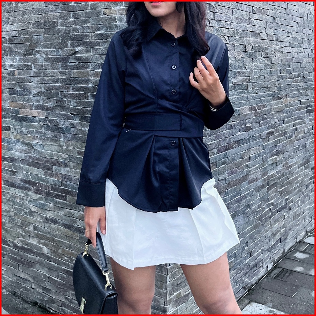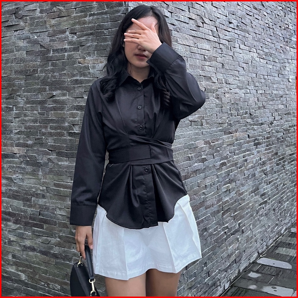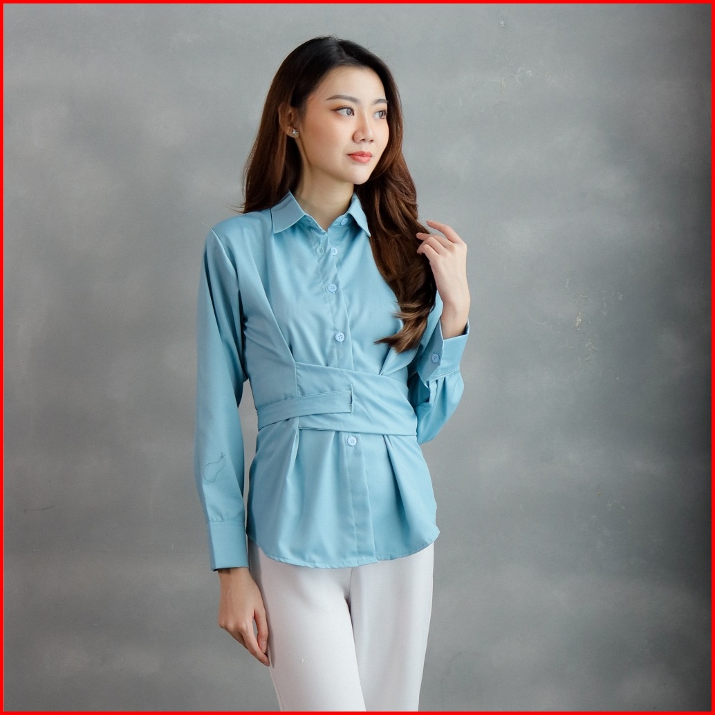 Kemeja Belt Fitted Kemeja Kerja Wanita Kemeja Panjang