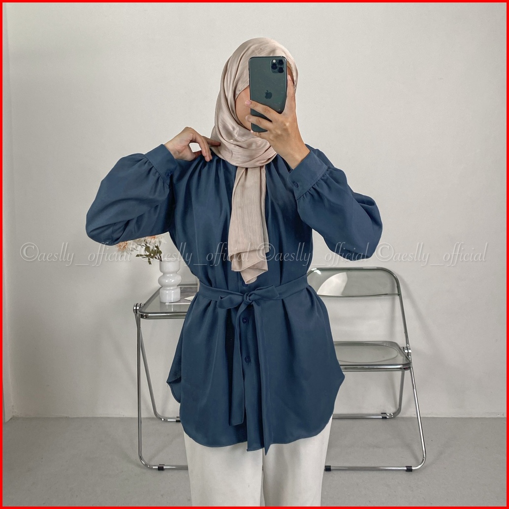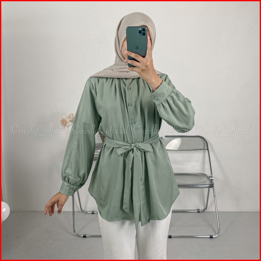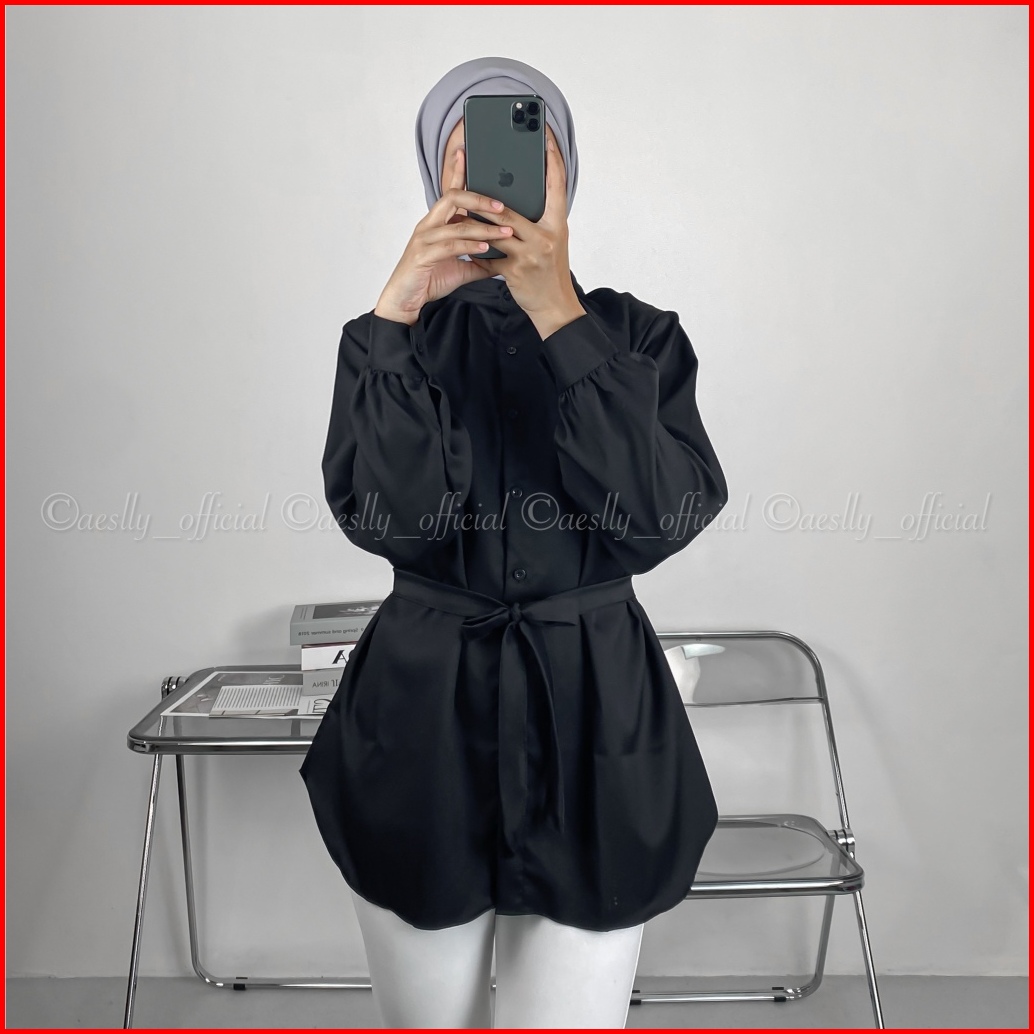 Aeslly - Sowii Blouse Kemeja Lengan Panjang Balon Shakila Atasan Wanita Polos Baju Kantor Kuliah Kampus Kondangan Kekini