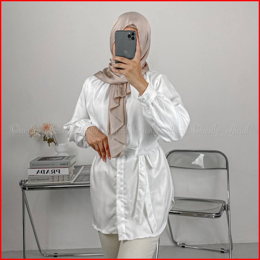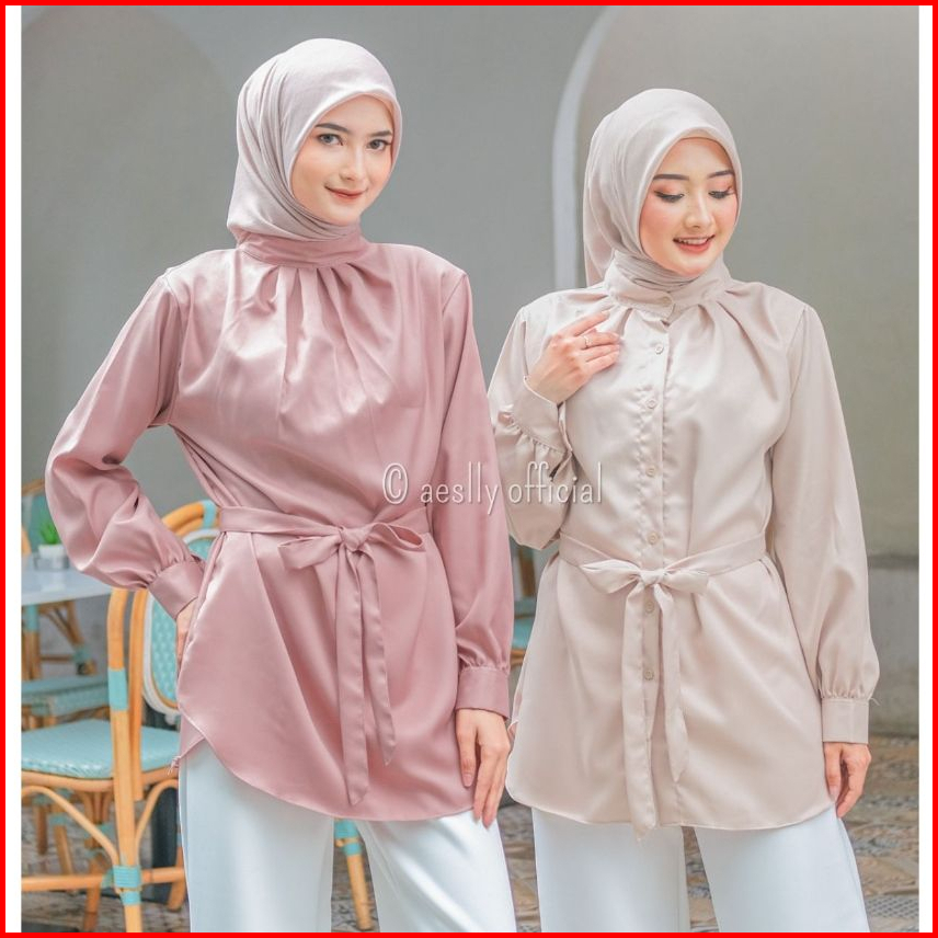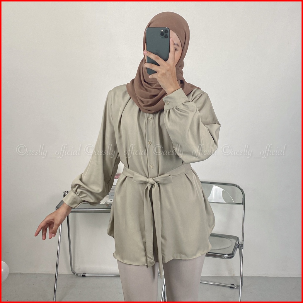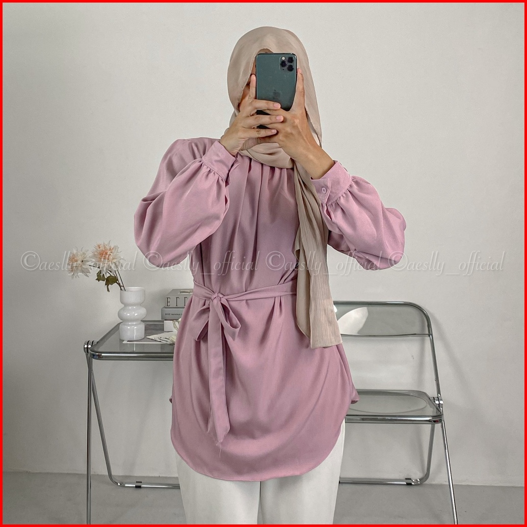 Aeslly - Sowii Blouse Kemeja Lengan Panjang Balon Shakila Atasan Wanita Polos Baju Kantor Kuliah Kampus Kondangan Kekini