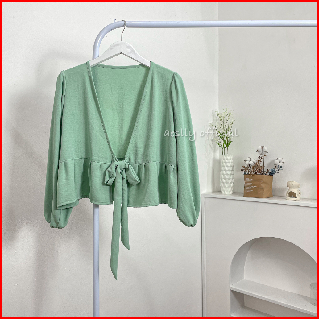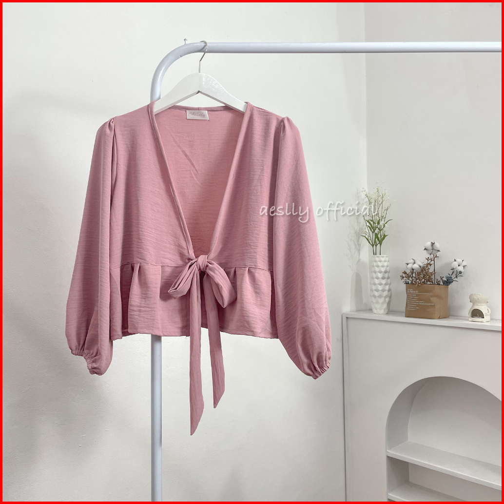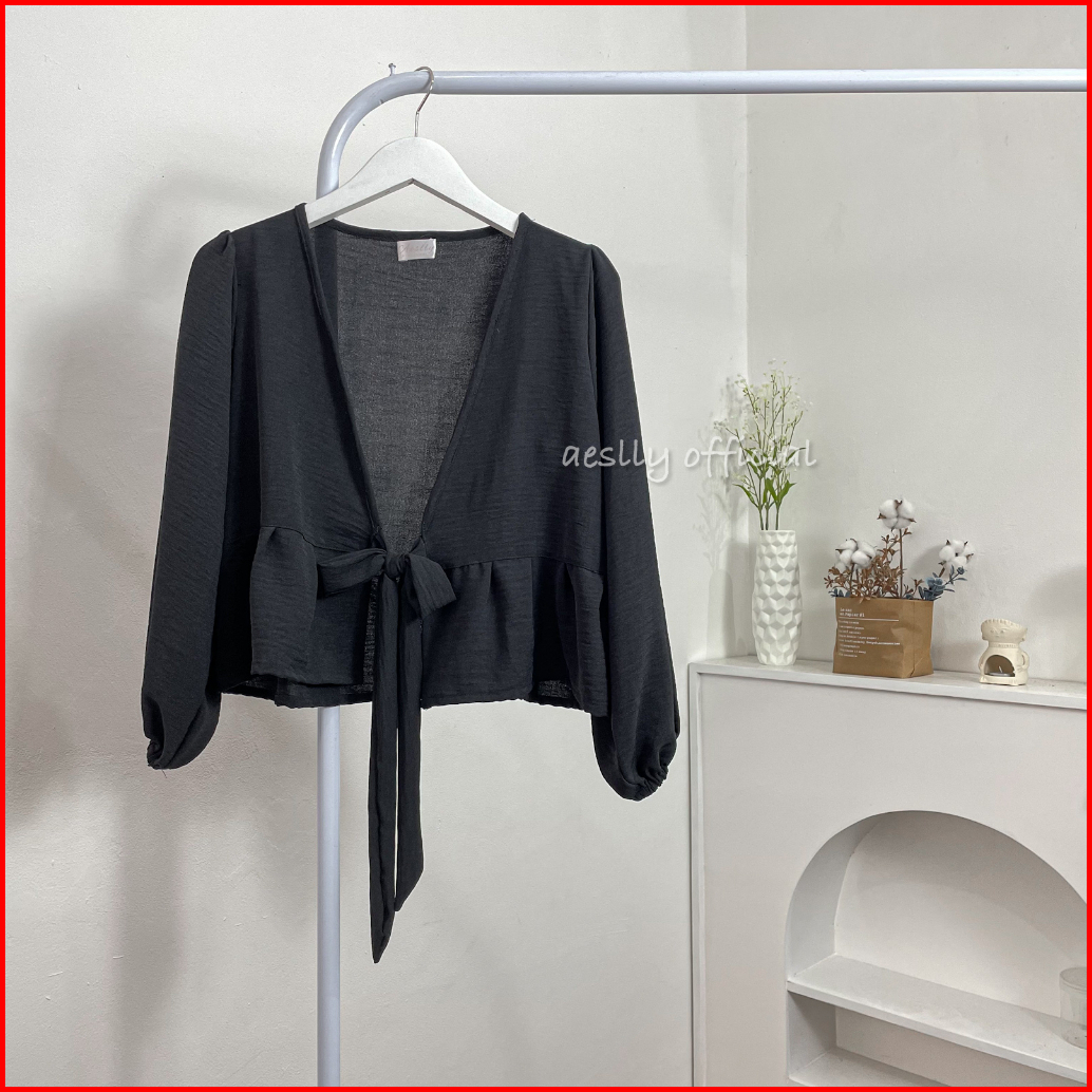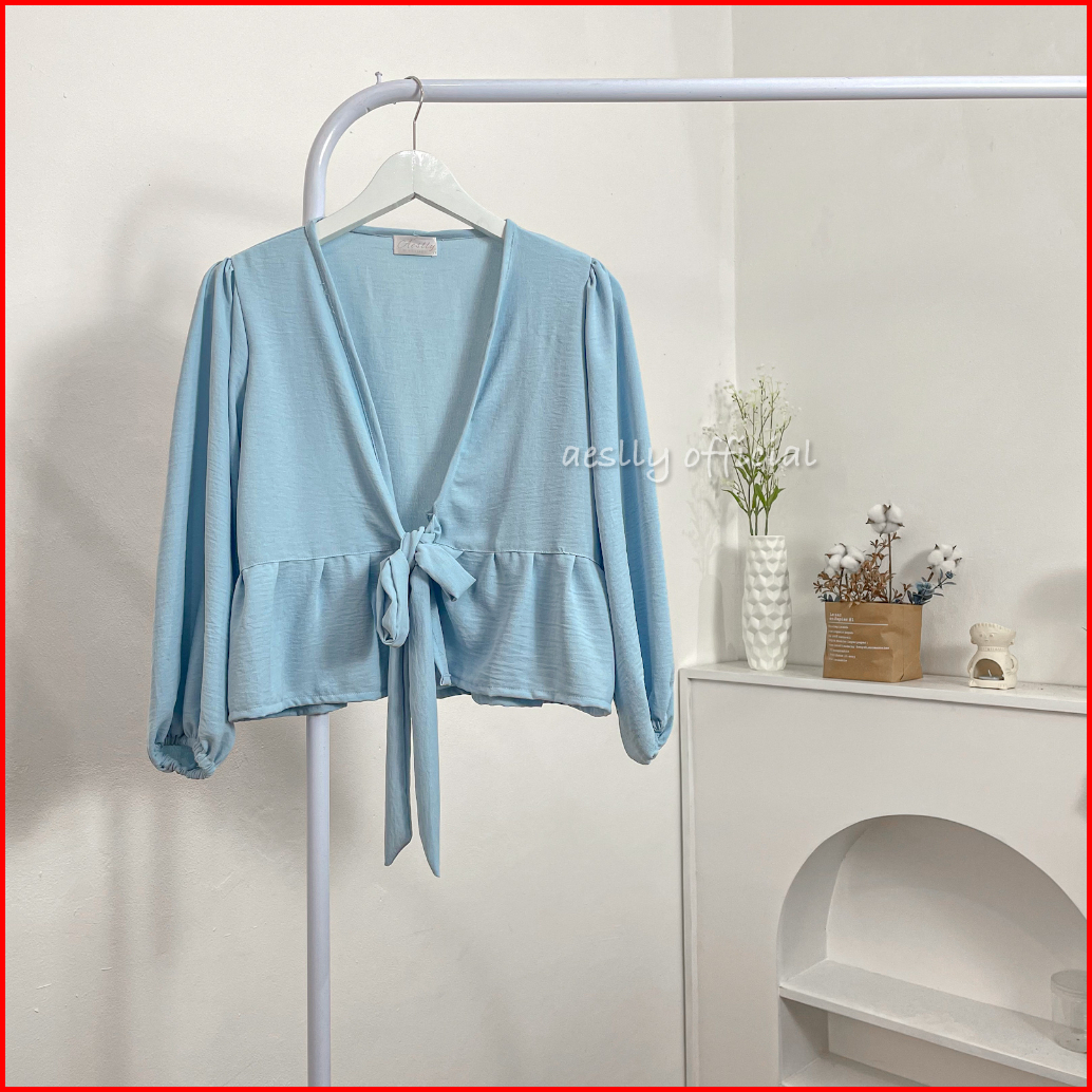 Aeslly - Feylin Blouse Kemeja Lengan Panjang Balon Atasan Wanita Polos Baju Kantor Kuliah Kampus Crinkle Cey Airflow Blo