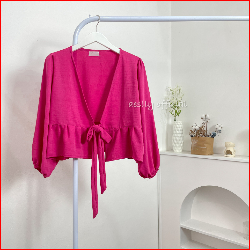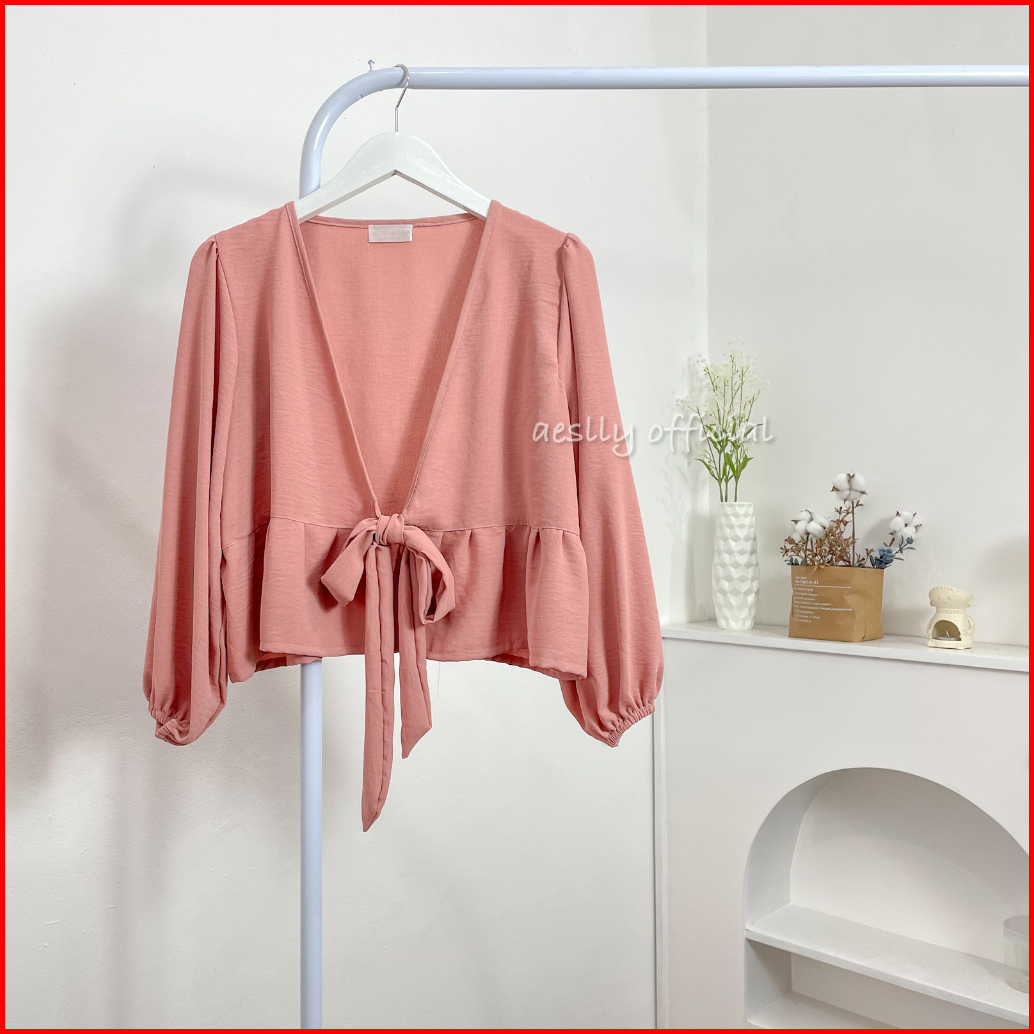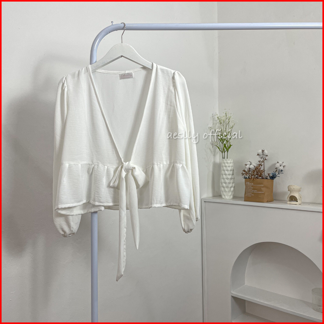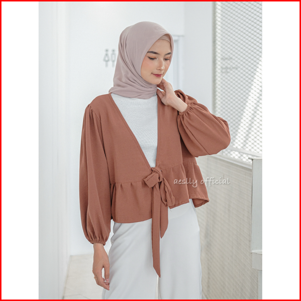 Aeslly - Feylin Blouse Kemeja Lengan Panjang Balon Atasan Wanita Polos Baju Kantor Kuliah Kampus Crinkle Cey Airflow Blo