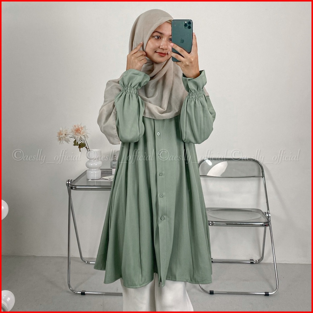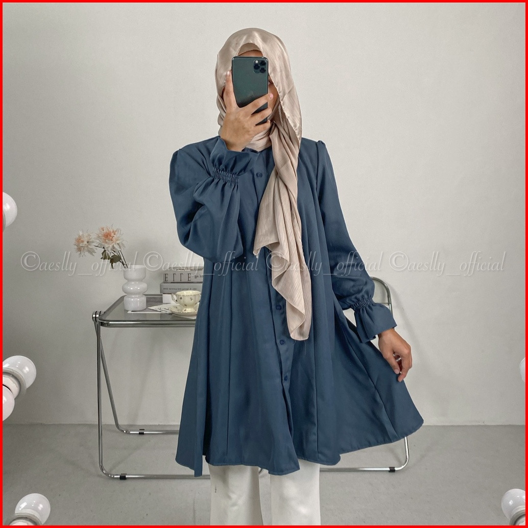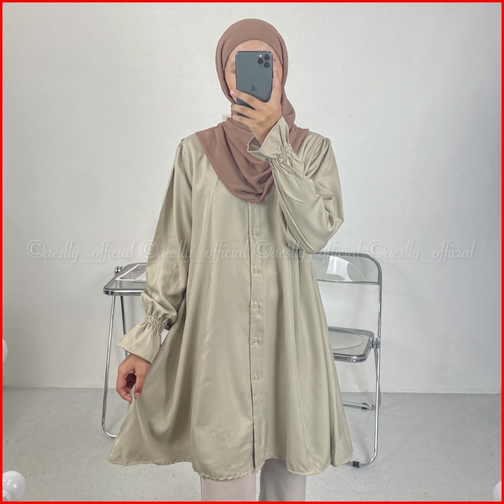 Aeslly - Sayana Blouse Tunik Kemeja Tunik Lengan Panjang Shakila Premium Atasan Wanita Polos Baju Kantor Kuliah Kampus K