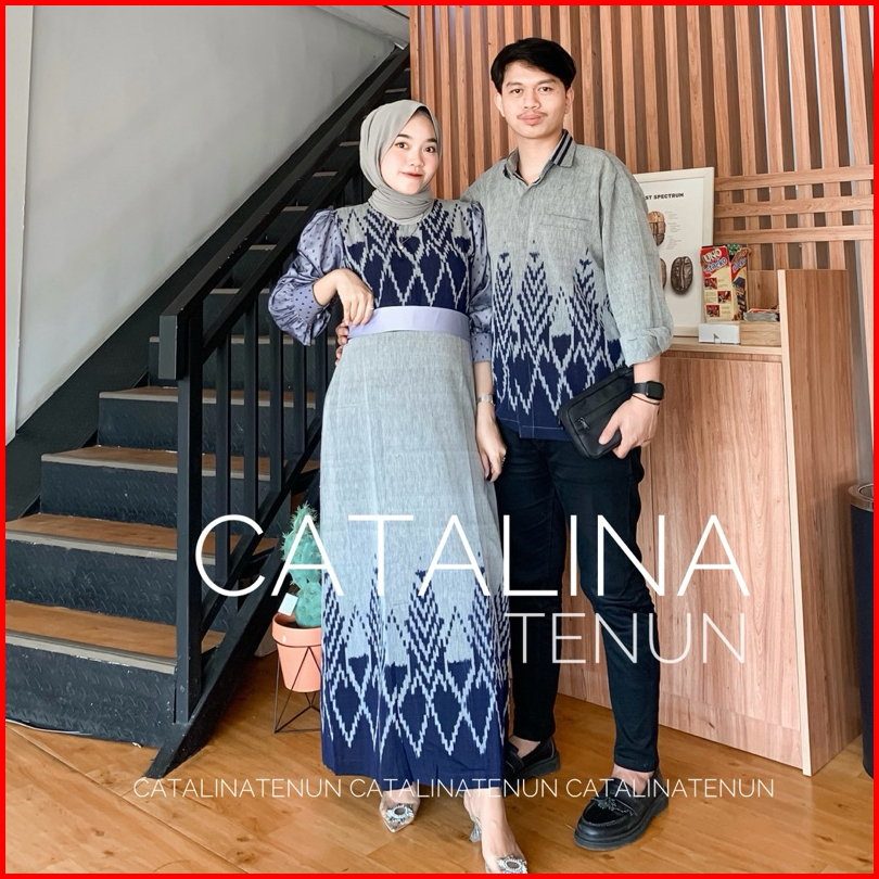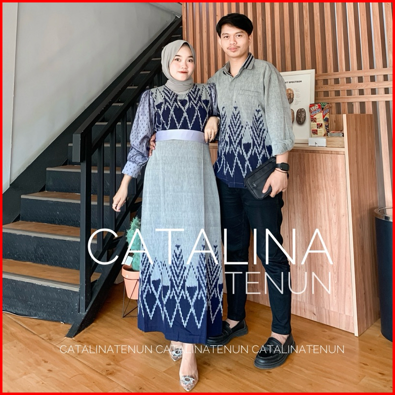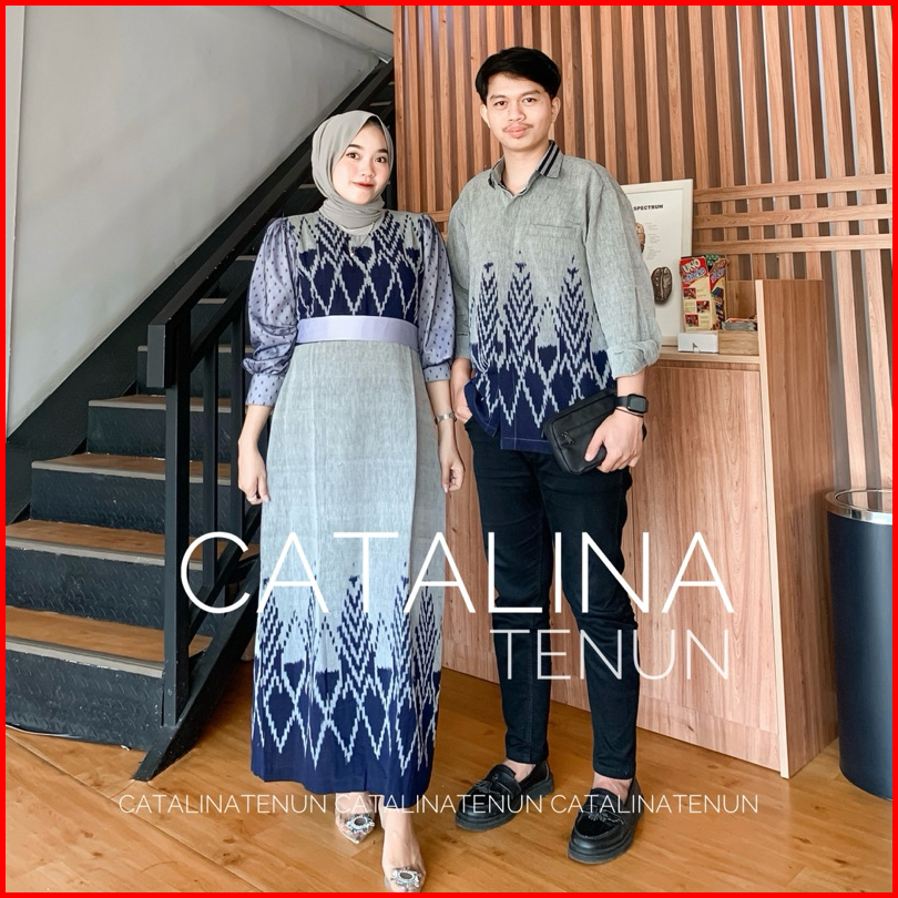 Baju Tenun Couple Fatma Cemara Abu - Baju Couple Kondangan - Tenun Couple Set - Kemeja Gamis Kondangan - Baju Tenun Kelu