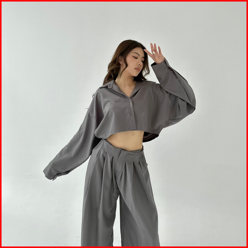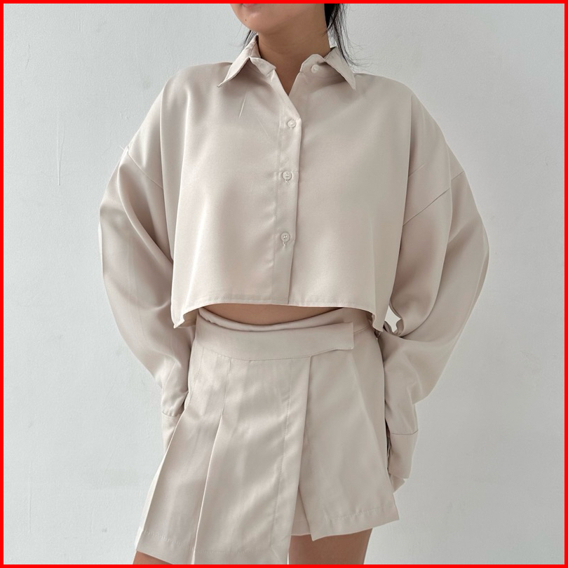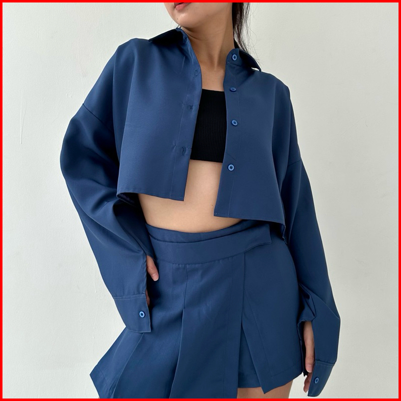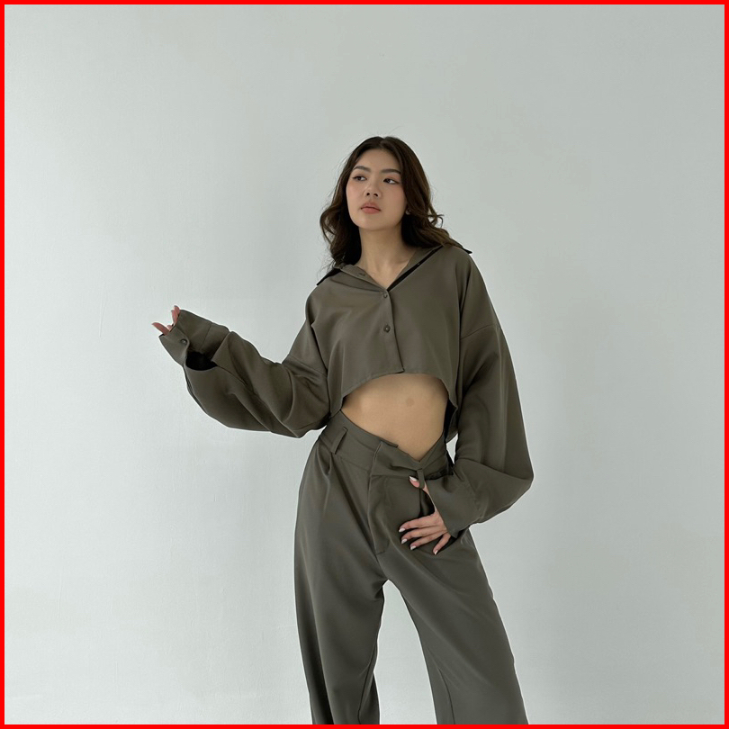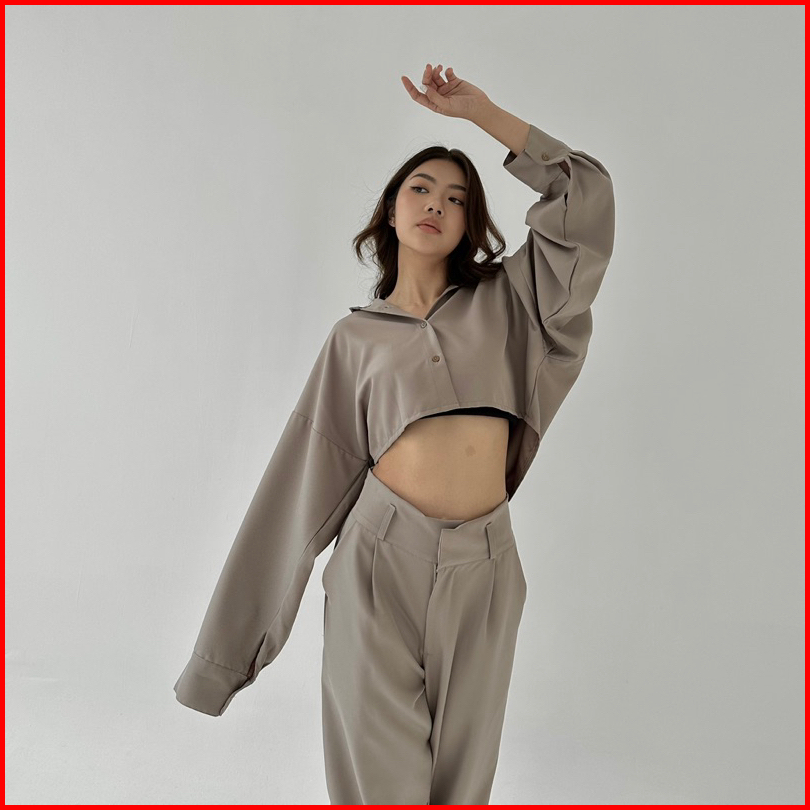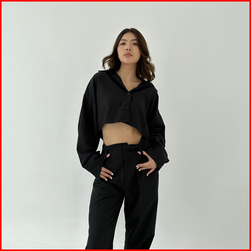 Dion Top - Kemeja Crop Wanita Oversized Shirt Korean Long Sleeve Blouse Wanita Crop Top Basic Posha
