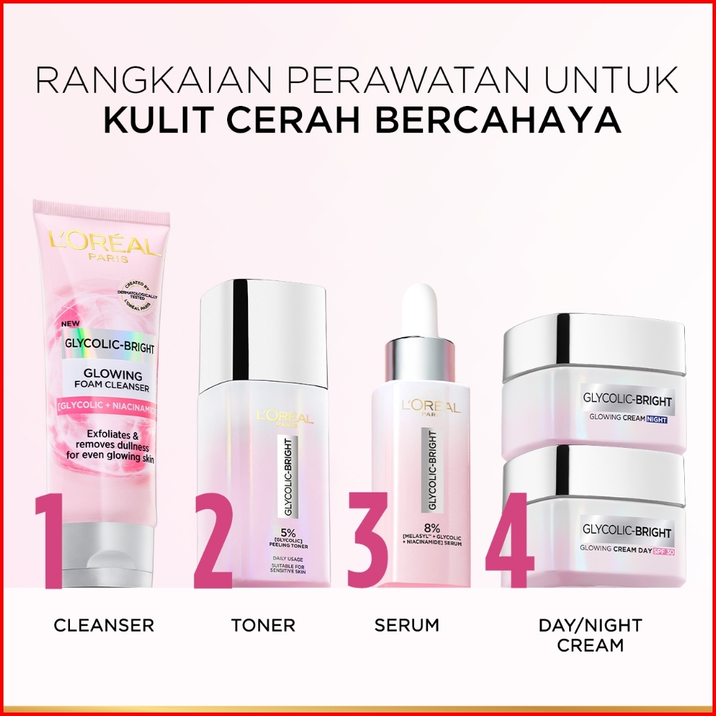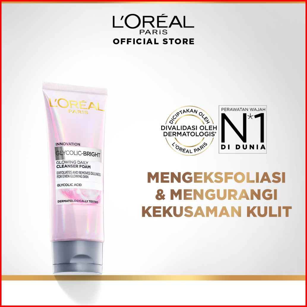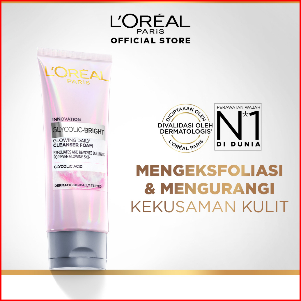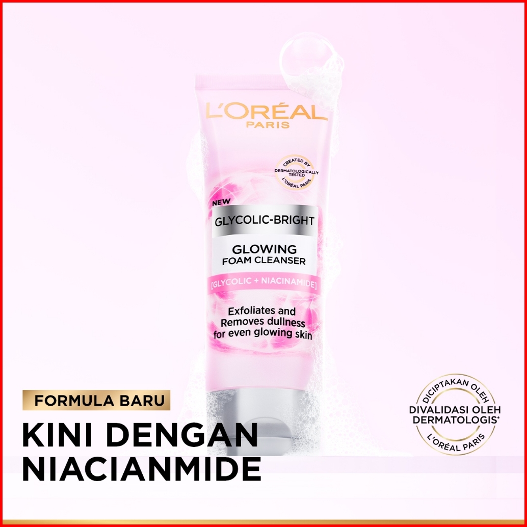 L Oreal Paris Glycolic Bright Daily Cleanser Foam - 50 100ml Skin Facial Wash Loreal Glyco Acid Aha Exfoliating Anti Dar