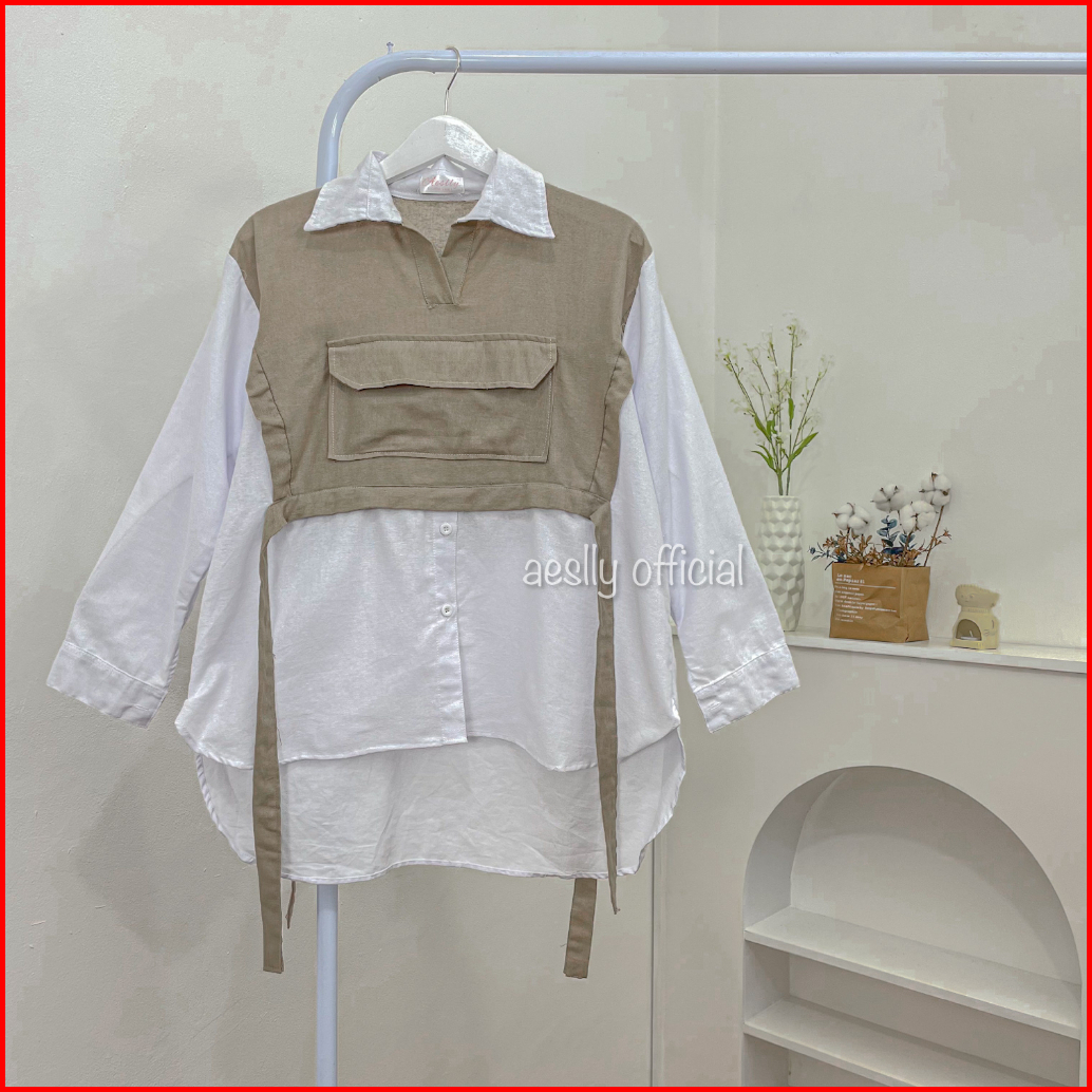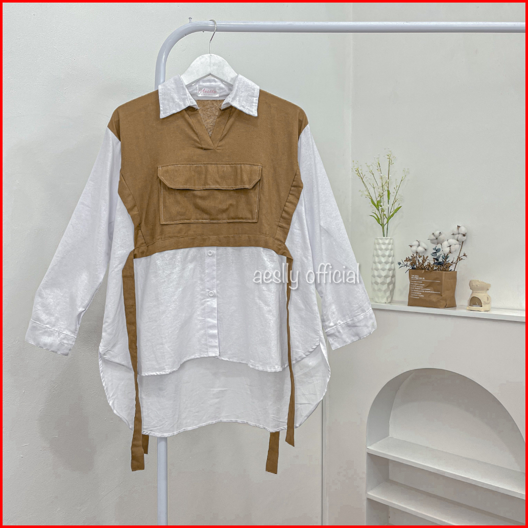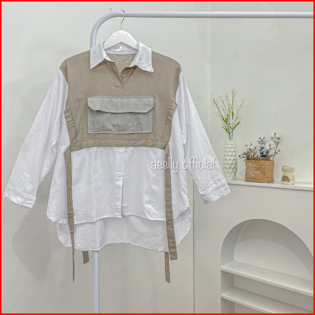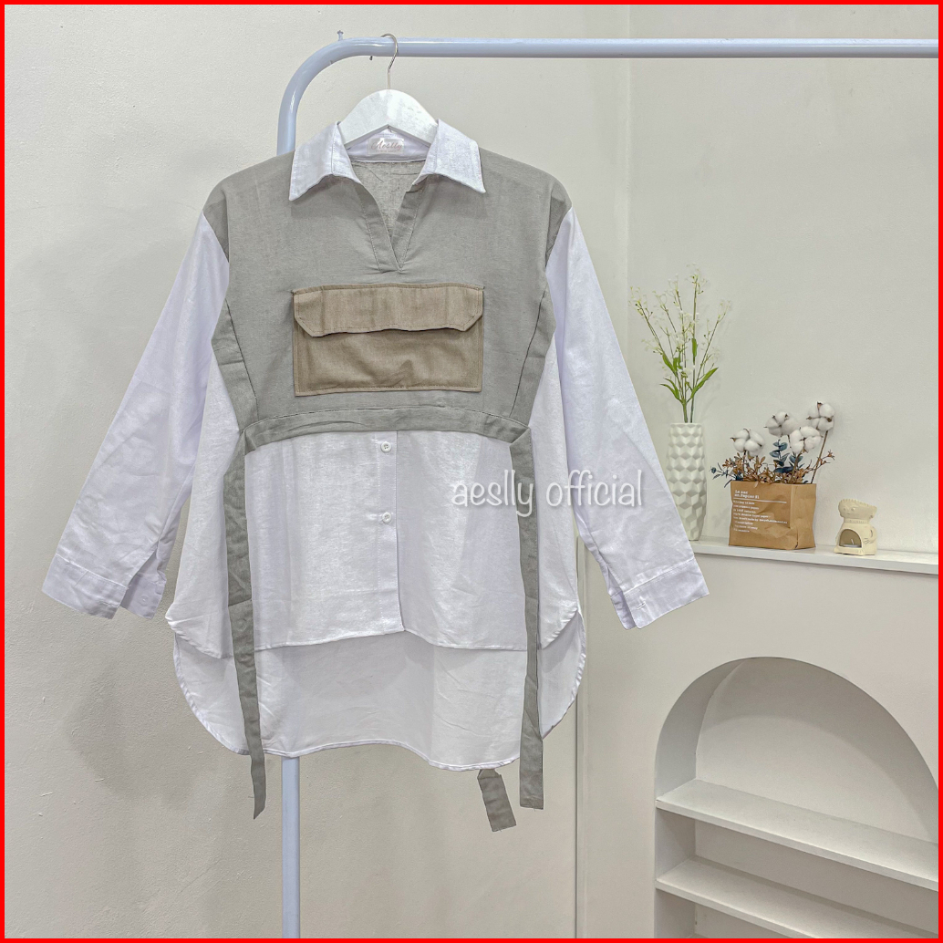 Aeslly - Colfaa Blouse Blouse Lengan Panjang Hijab Friendly Atasan Wanita Polos Kantor Kuliah Kampus Linen Blouse Wanita