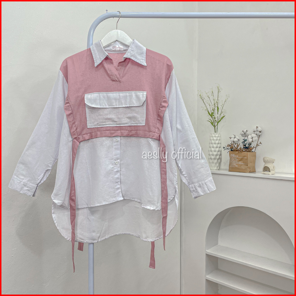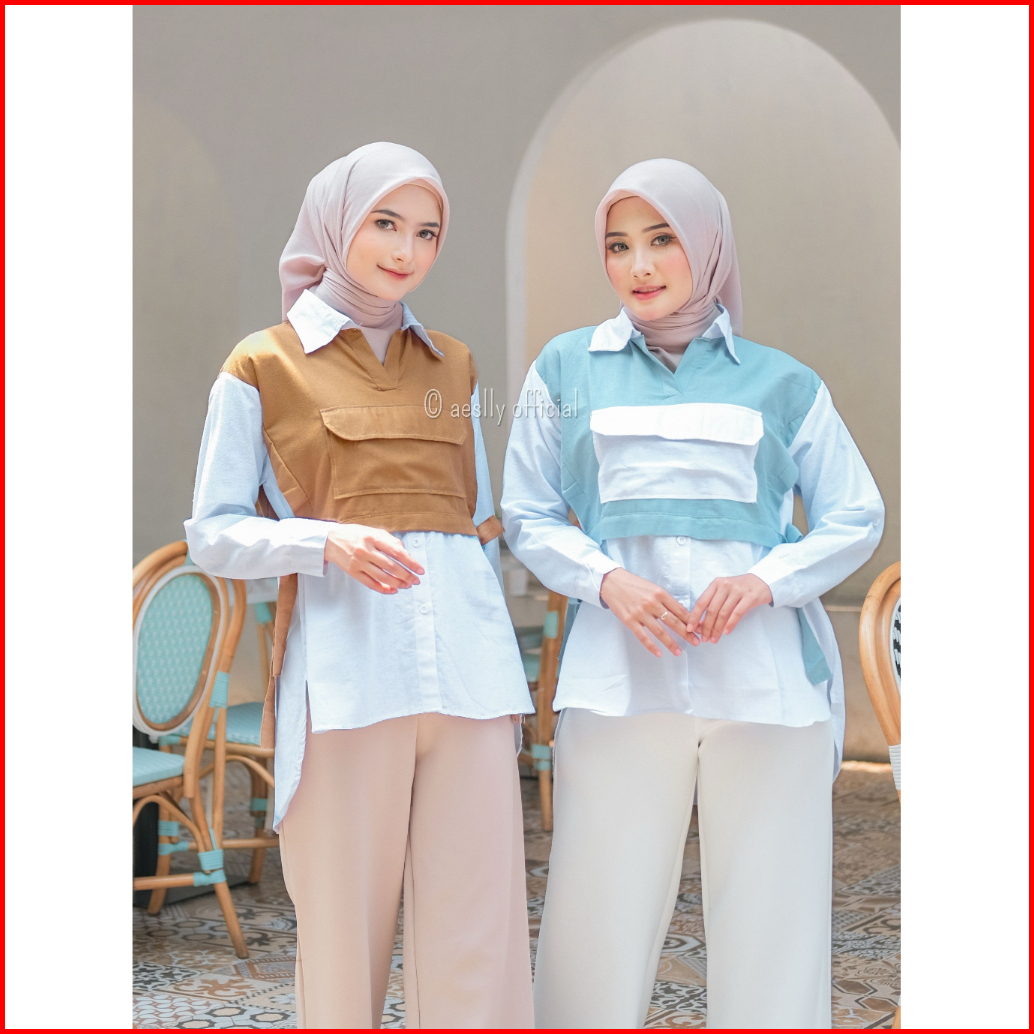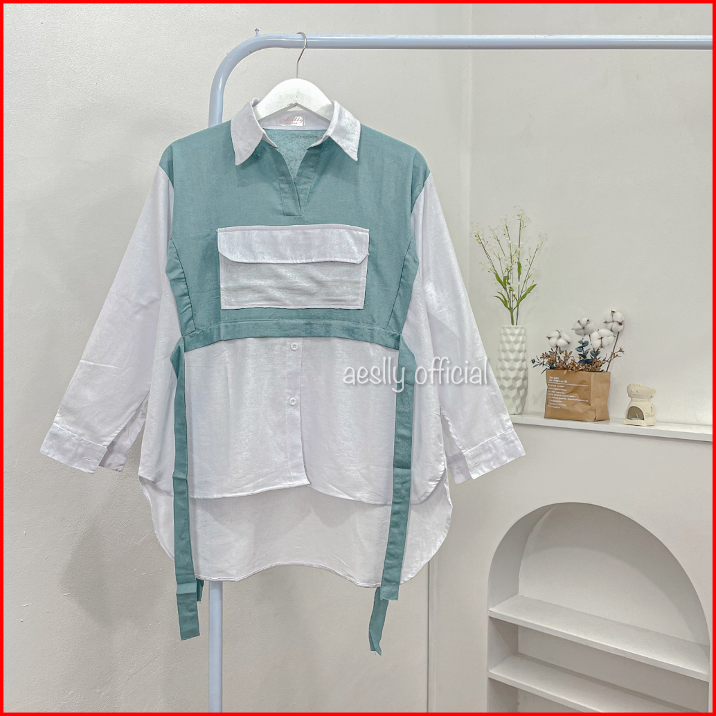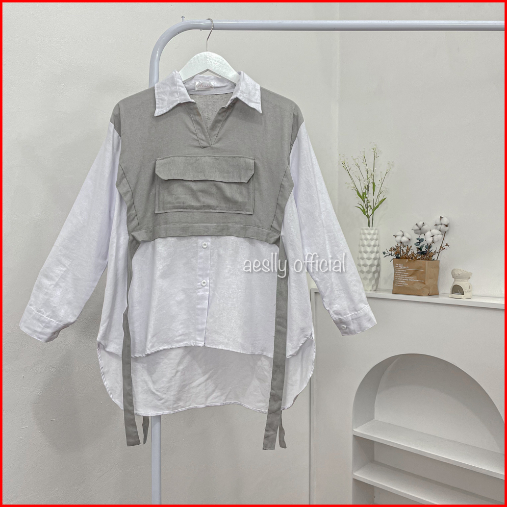 Aeslly - Colfaa Blouse Blouse Lengan Panjang Hijab Friendly Atasan Wanita Polos Kantor Kuliah Kampus Linen Blouse Wanita