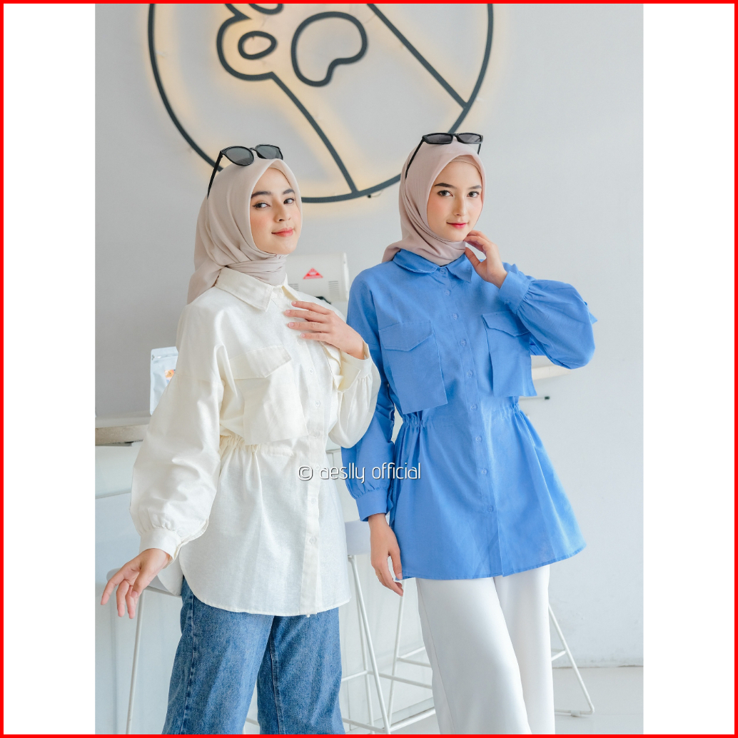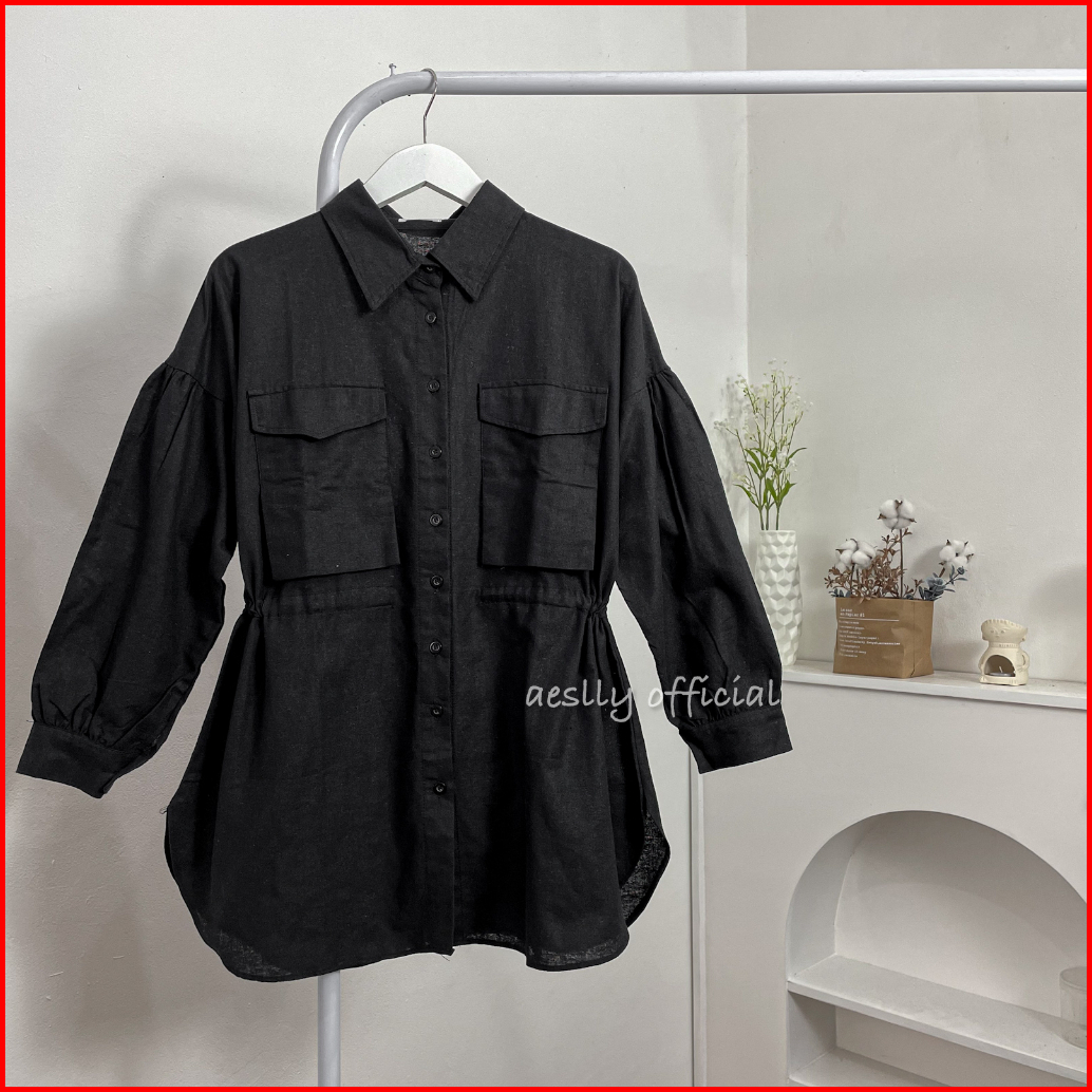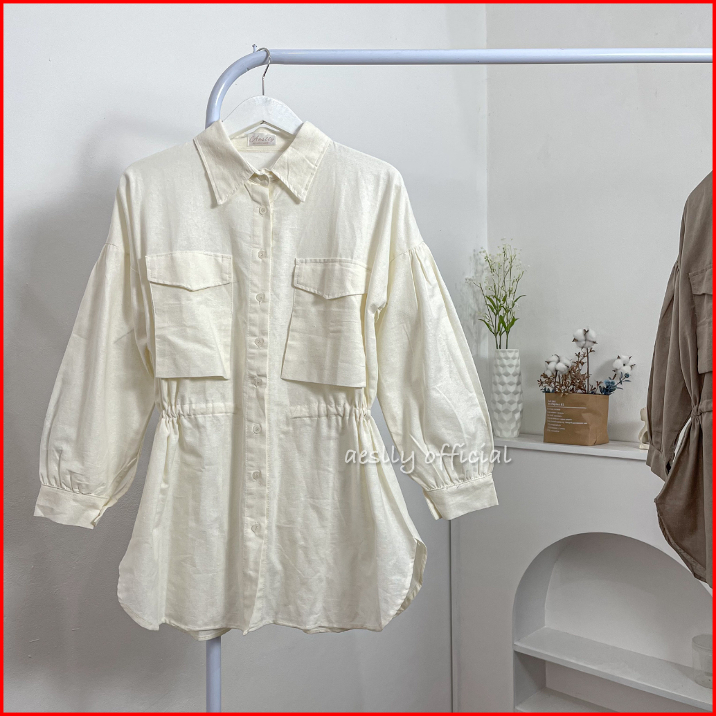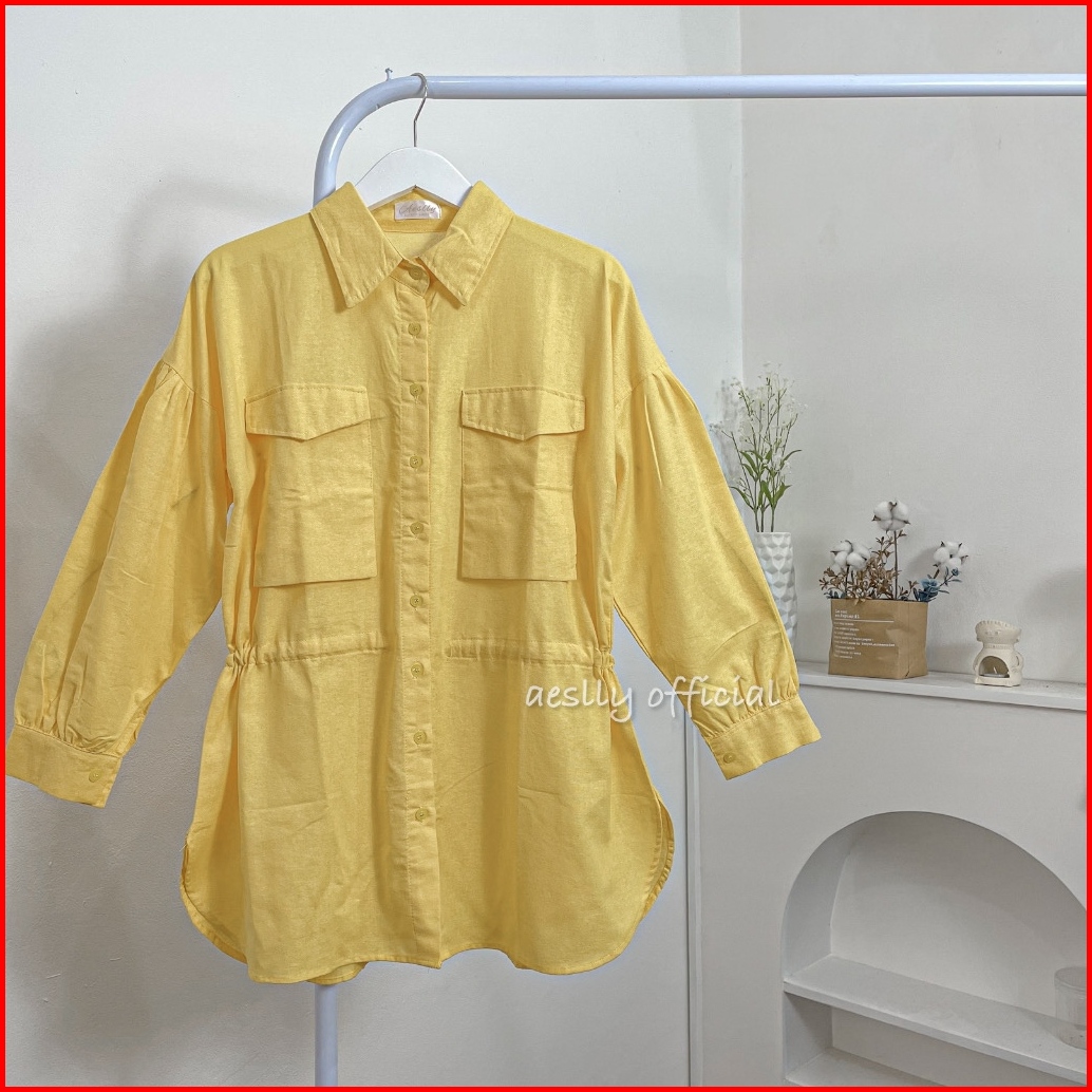 Aeslly - Dycinta Blouse Kemeja Lengan Panjang Polos Atasan Wanita Kantor Kuliah Kampus Linen Kekinian Korean Style Hijab