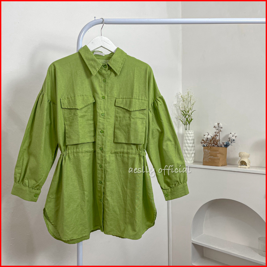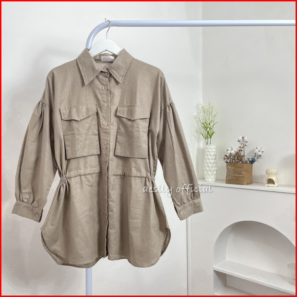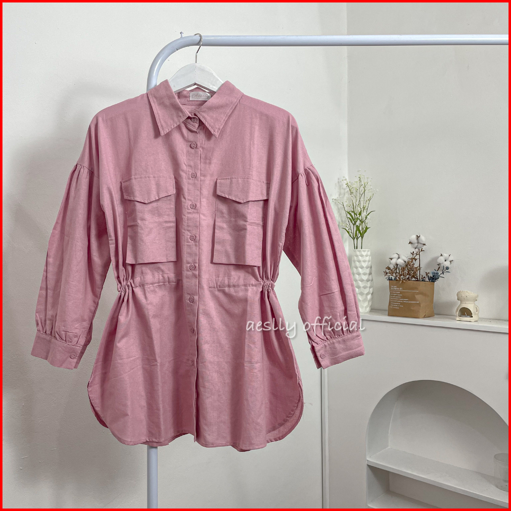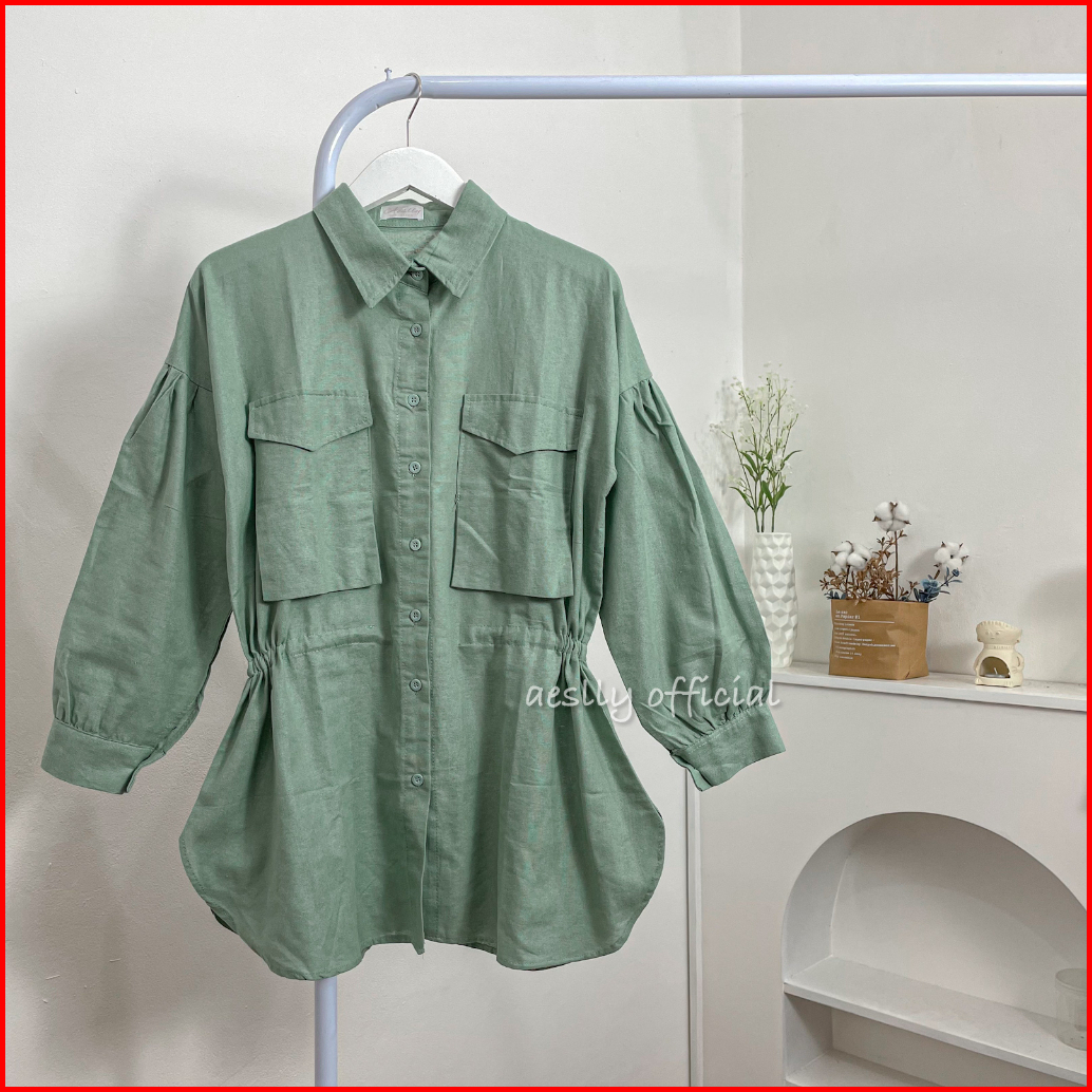 Aeslly - Dycinta Blouse Kemeja Lengan Panjang Polos Atasan Wanita Kantor Kuliah Kampus Linen Kekinian Korean Style Hijab