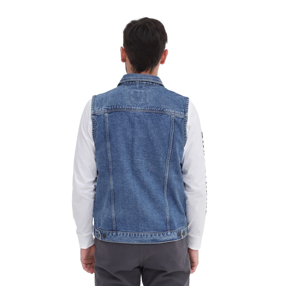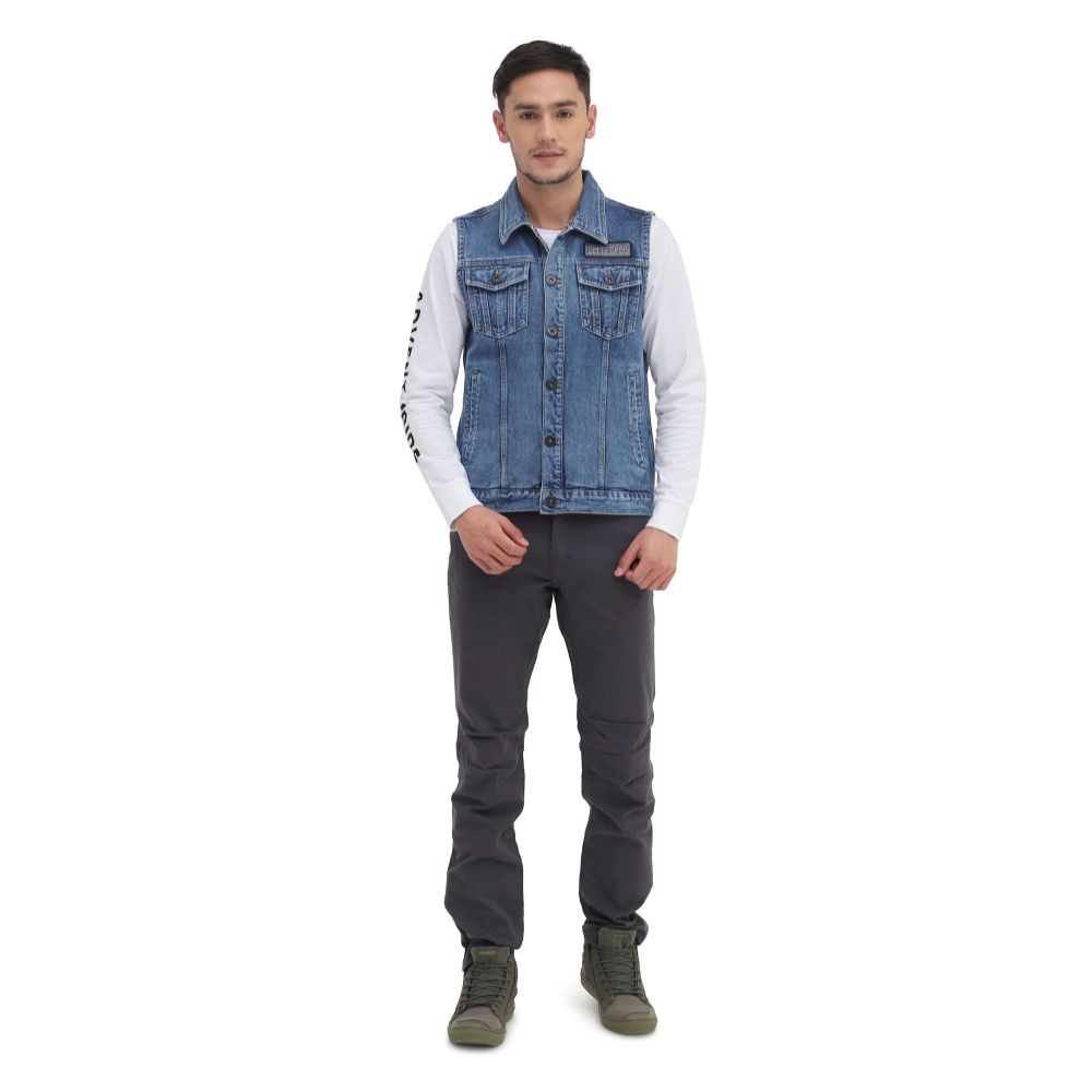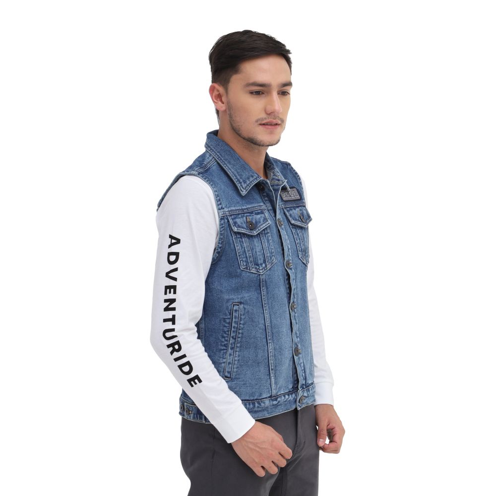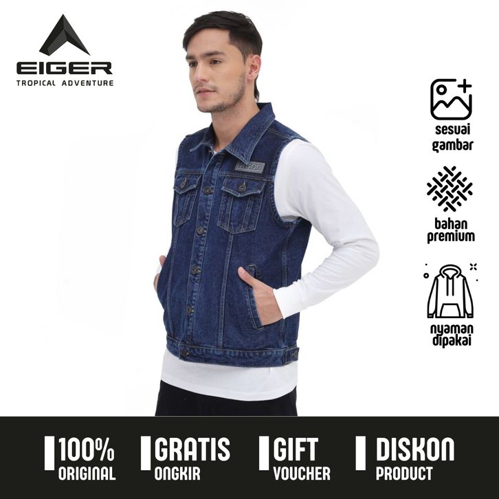 Rompi Eiger Original Jaket Vest Barier Denim Warna Dark Blue Bahan Denim 23 . VWBM
