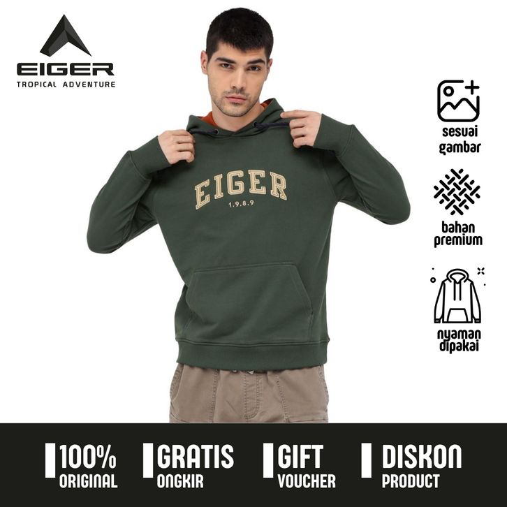 Hoodie Eiger Original Jaket Sweater Pria X-Felpatch Warna Dark Green Bahan Katun 62 . OFBK