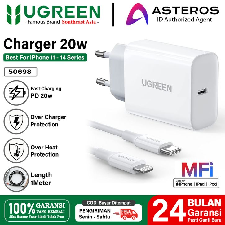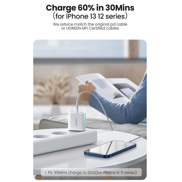[Star] UGREEN OFFICIAL STORE - CHARGER MFI IPHONE 11 12 13 14 TYPE C TO LIGHTNING PD FAST CHARGING