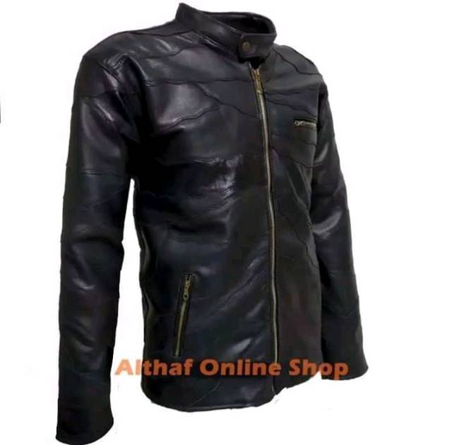 JAKET BIKERS RACING PRIA KULIT ASLI GARUT SAMBUNGAN BAHAN KULIT DOMBA ASLI BERKUALIAS JAHITAN RAPIH