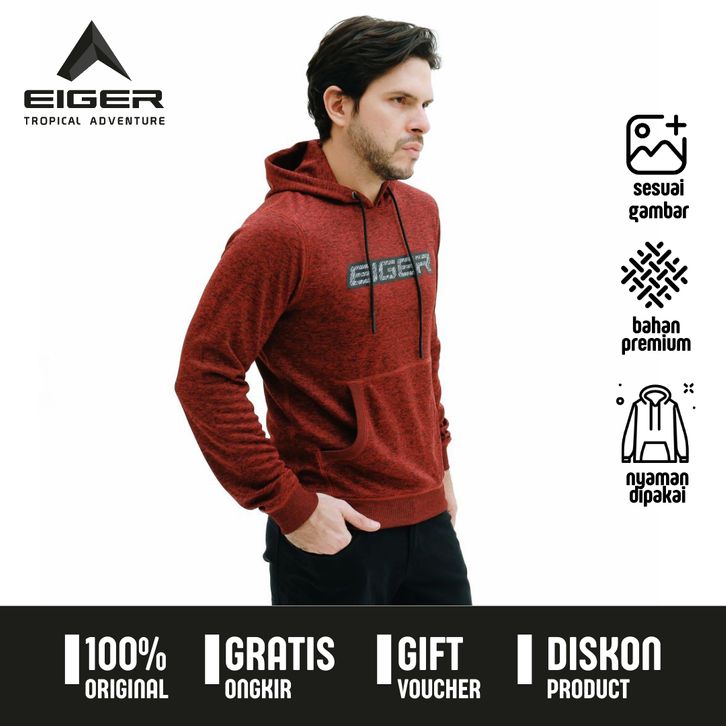 Hoodie Eiger Original Jaket Sweater Pria X-Rustle Warna Merah Bahan 44 . ECDX