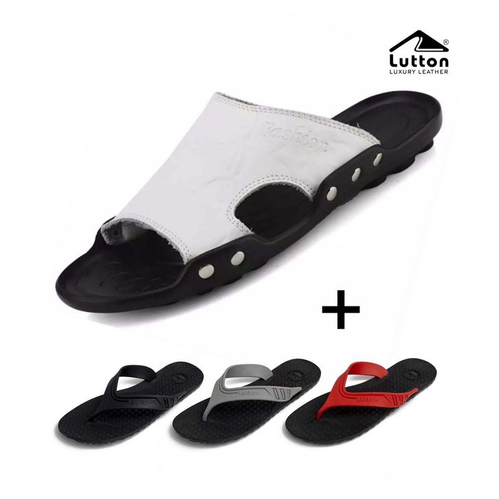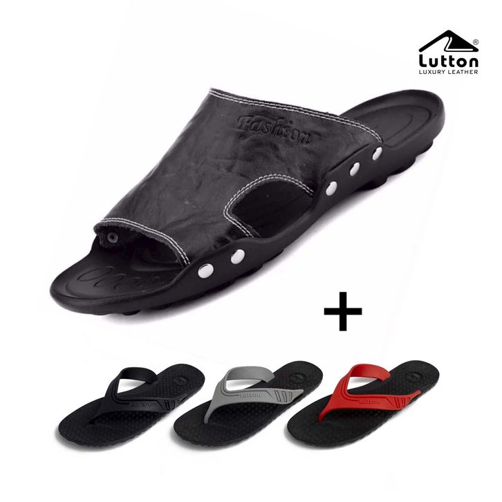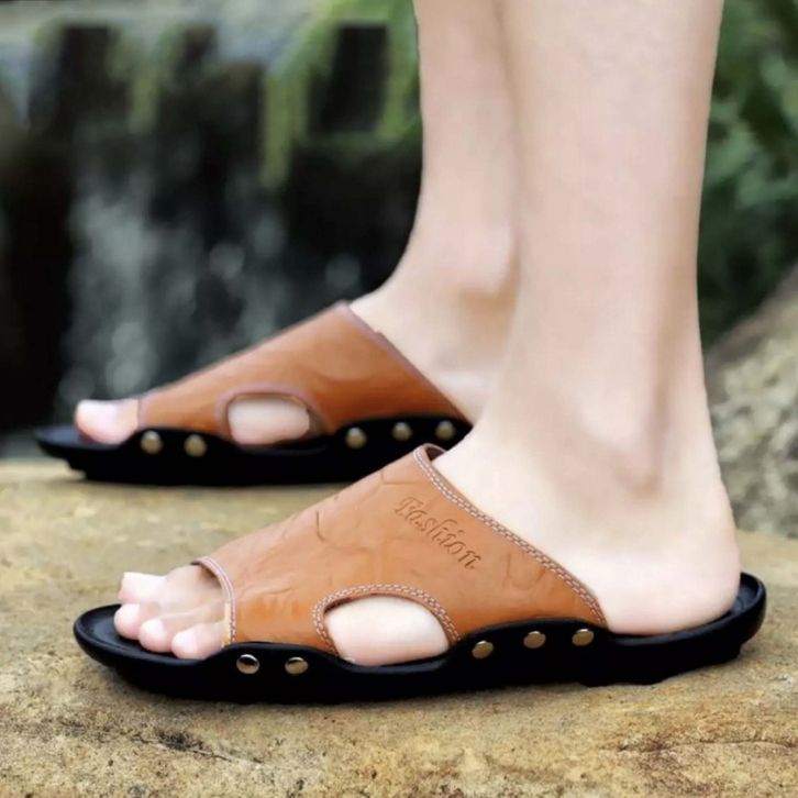 Sandal Slop Kulit Pria Lutton Sendal Model Selop Polos Slip On Bahan Sintetis Anti Slip Fashion Aksesoris Cowok korean