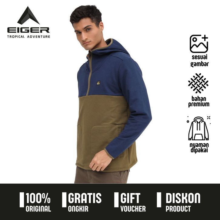 Hoodie Eiger Original Jaket Sweater Pria Kentawan Warna Biru Navy Bahan Katun 74 . NNLX