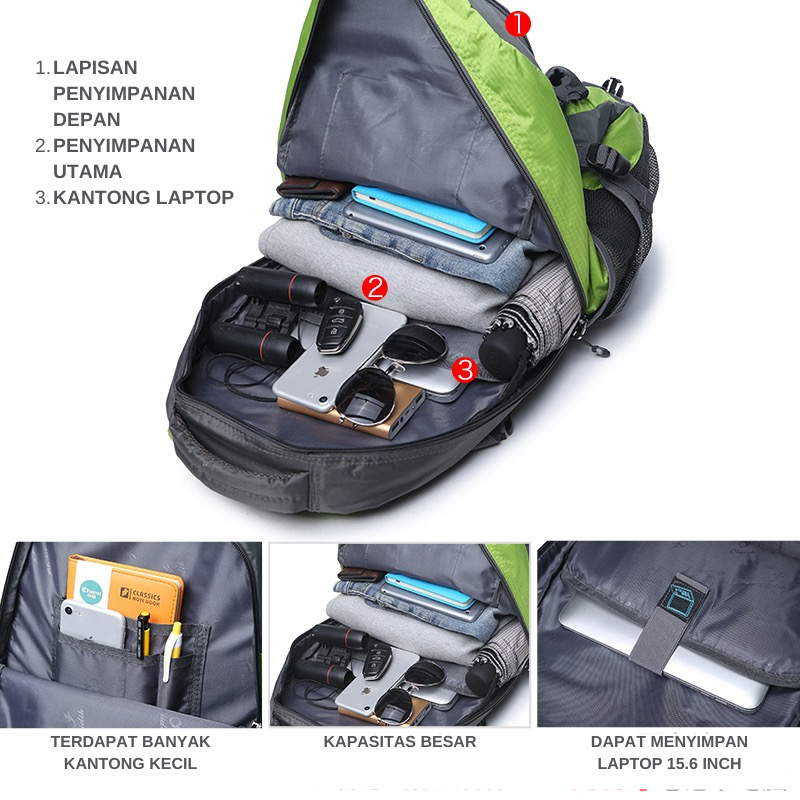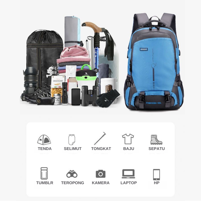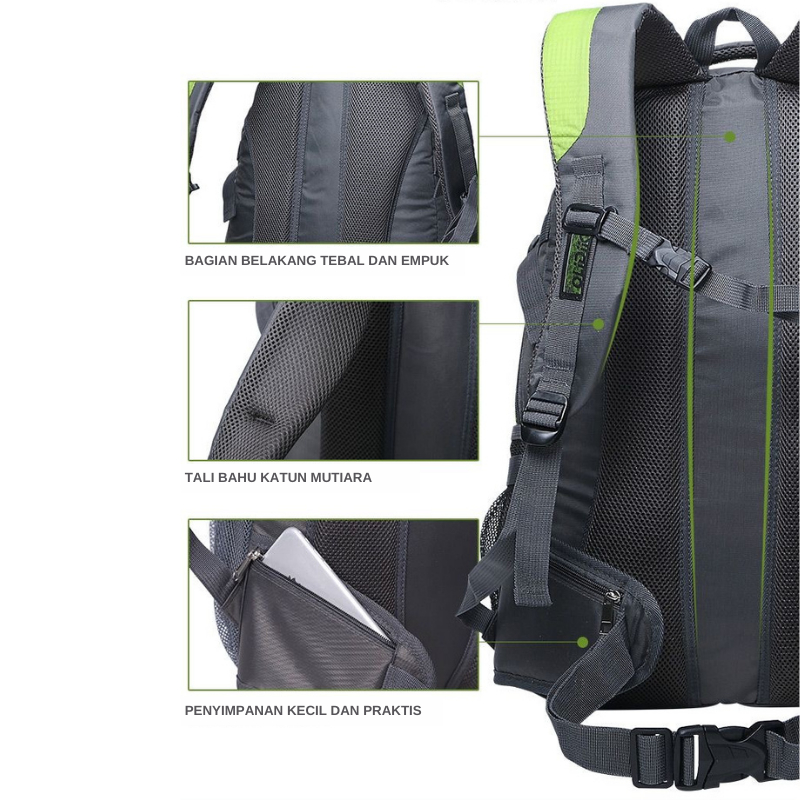 TECHDOO 45L TAS GUNUNG HIKING CLIMBING TRAVELLING BACKPACK TAS RANSEL LAPTOP WATERPROOF TRG02