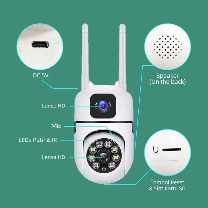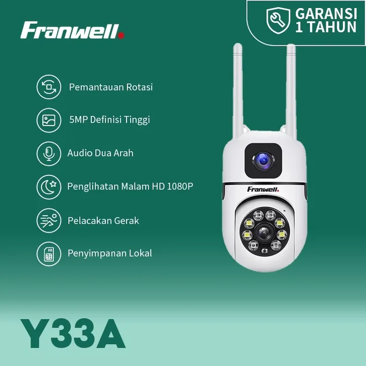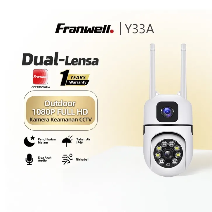 Franwell CCTV WiFi Dual Lens Outdoor 1080P Night Vision | Audio 2 Arah Pantau Lewat HP | Tahan Hujan