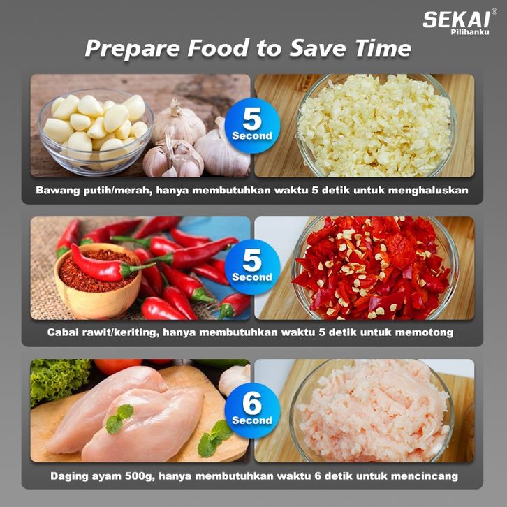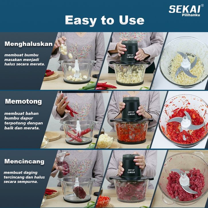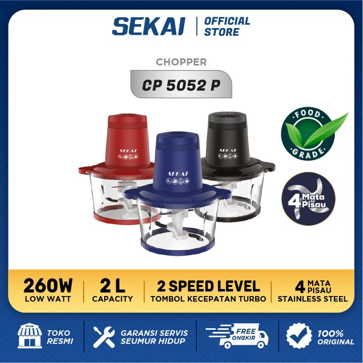 SEKAI Blender Chopper Penggiling Daging Sayur Buah / Food Processor Glass Food Grade Baby Safe / 2 Liter - CP 5052 / CP