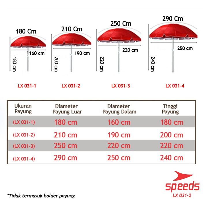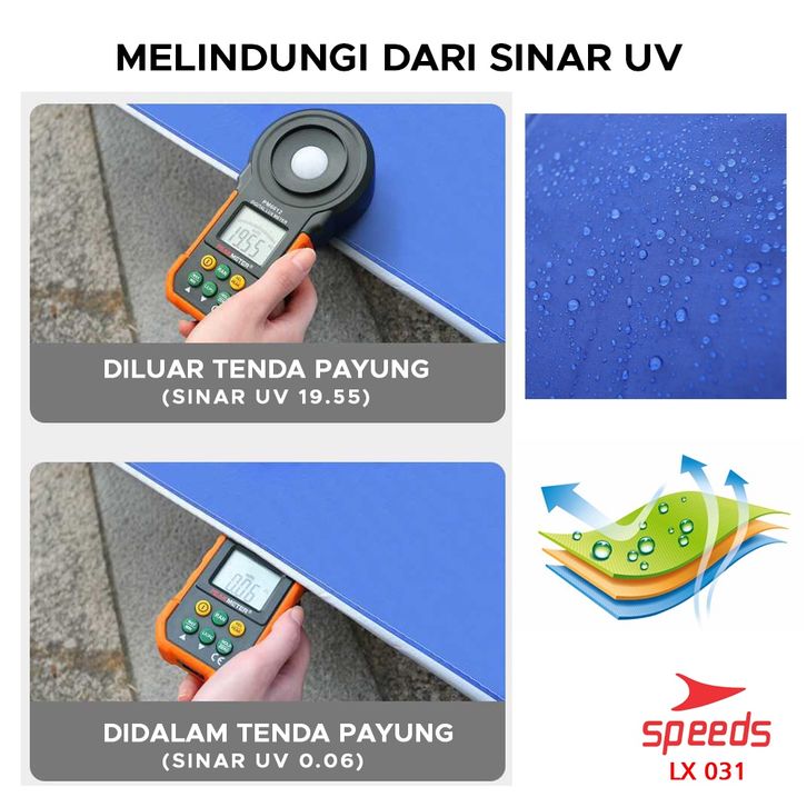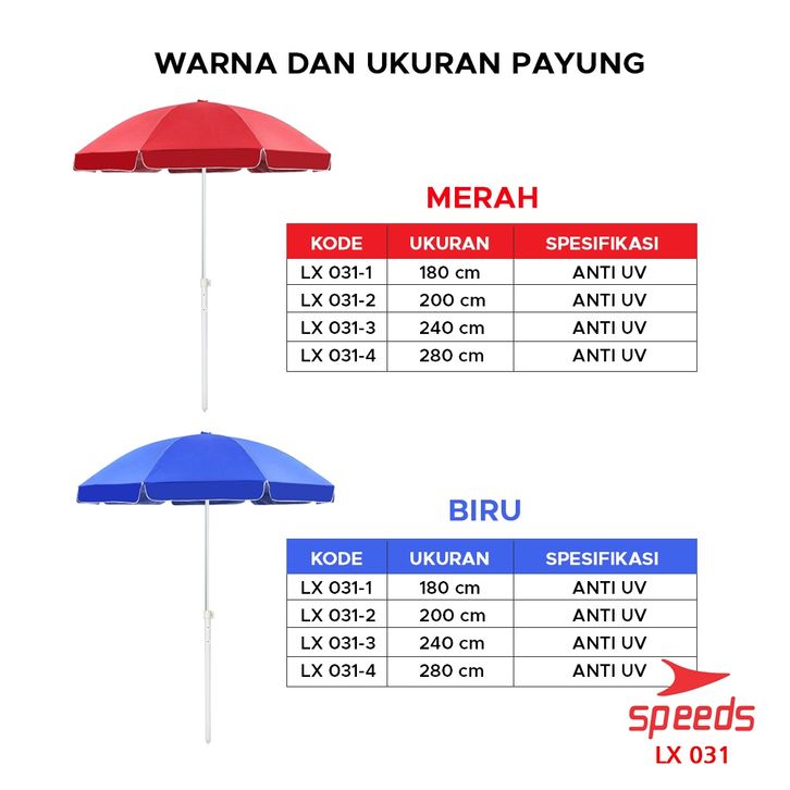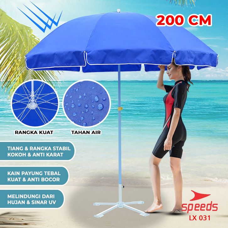 Payung Jualan Jumbo Lipat SPEEDS Tenda 200cm Taman Pantai Cafe Bazar Lapak 2 Lapis Besar Hujan Kuat UV Polos