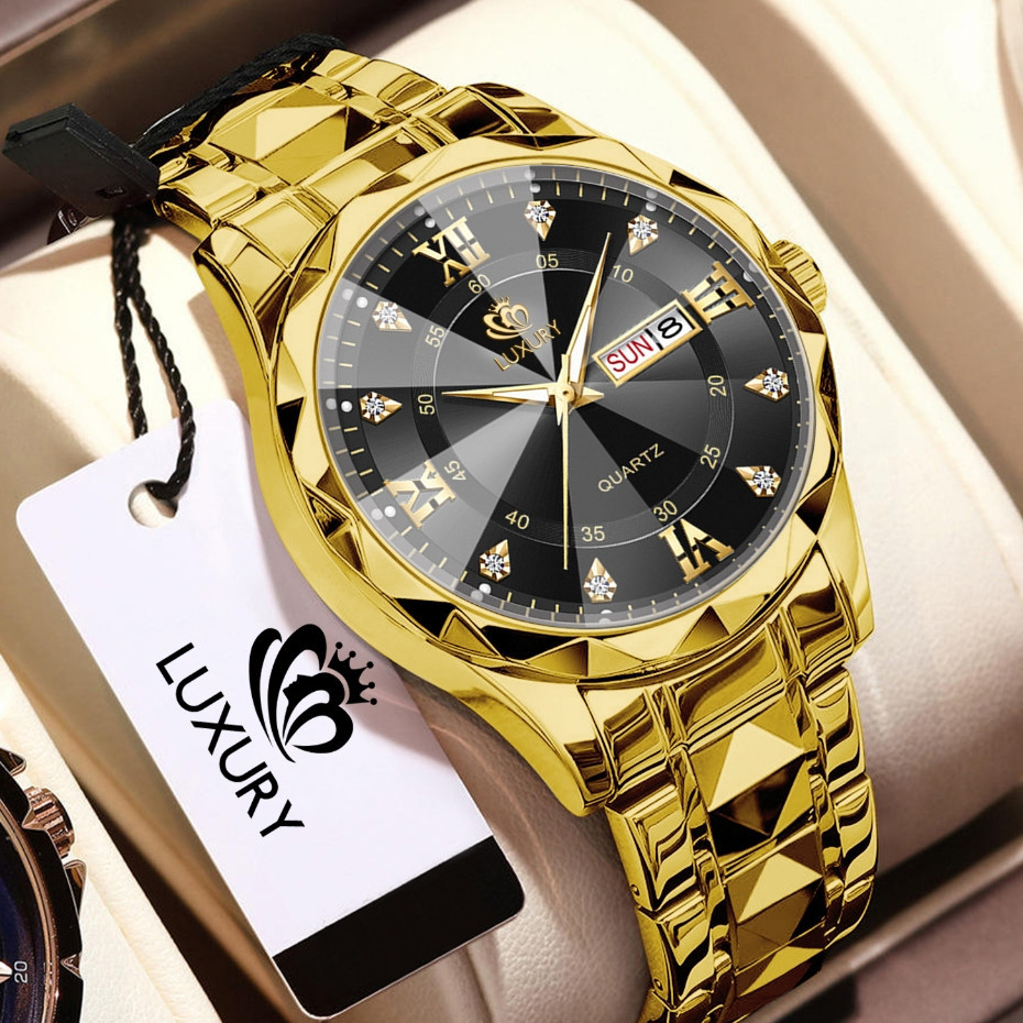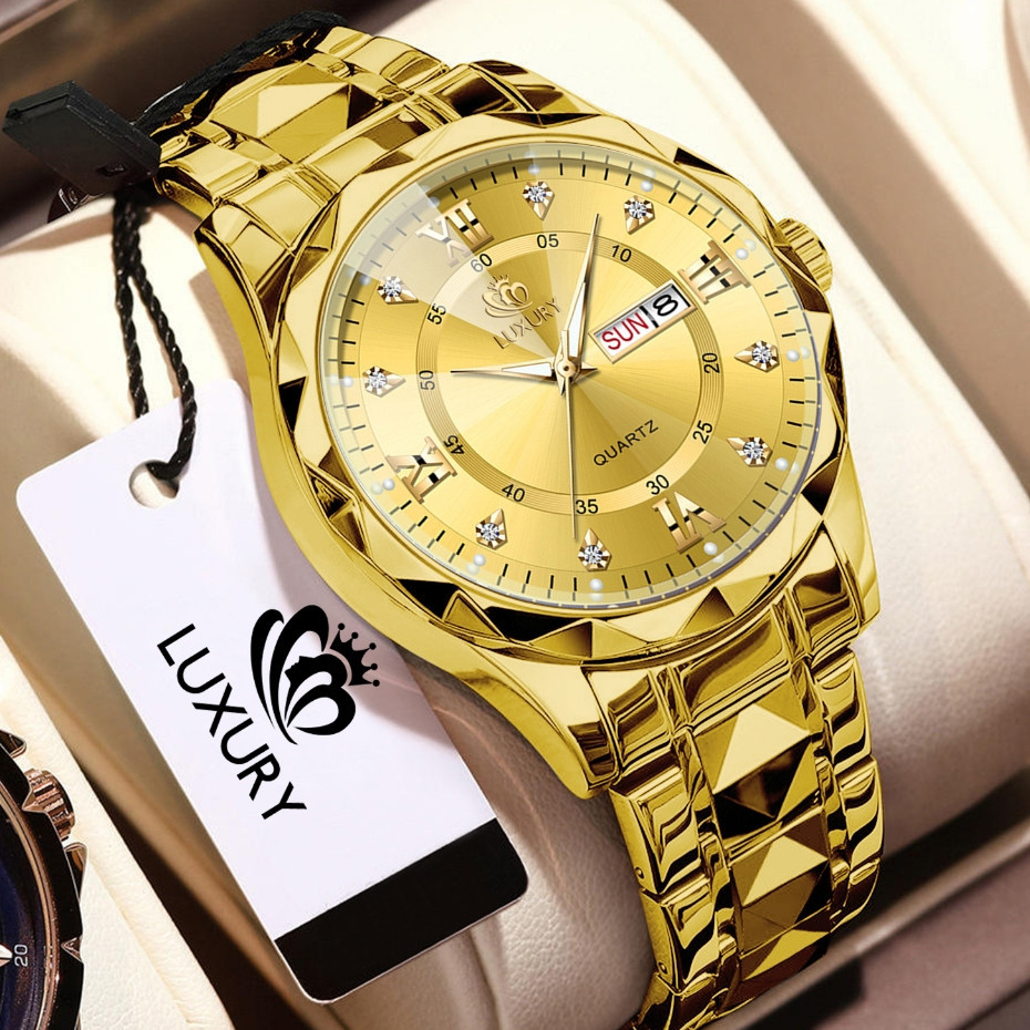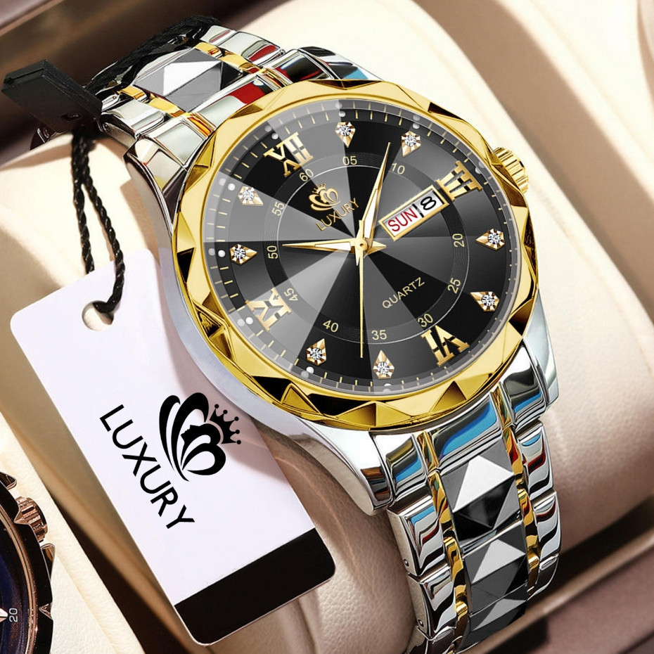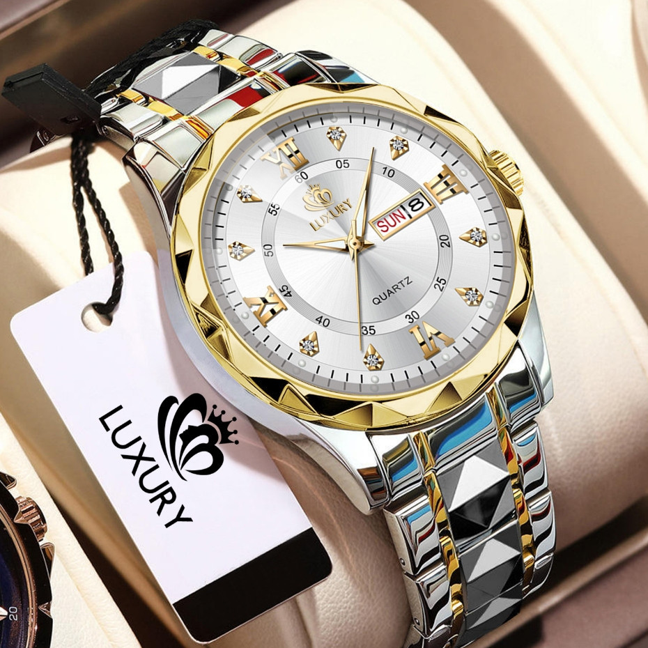 LUXURY Jam Tangan Pria Tahan Air Stainless Steel Anti Karat Best Seller + Kotak Dan Batrai