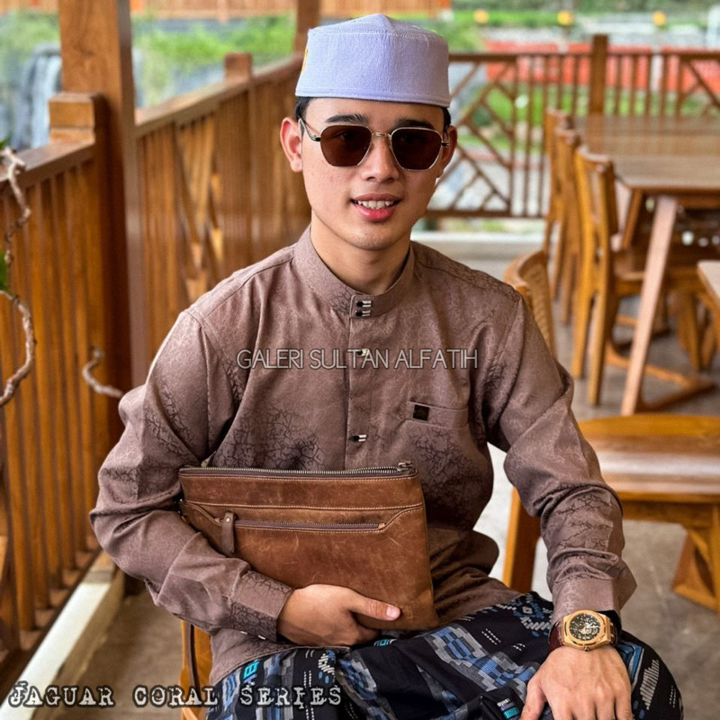 KEMKO JAGUAR ALFATIH MOTIF CORAL KATUN SONGKET KEMEJA KOKO PRIA DEWASA
