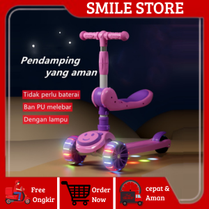 Skuter Anak Roda 3 Scooter 2 in 1 Injak Pedal Lipat Cocok untuk Usia 2-12 Tahun Anak dengan Lampu