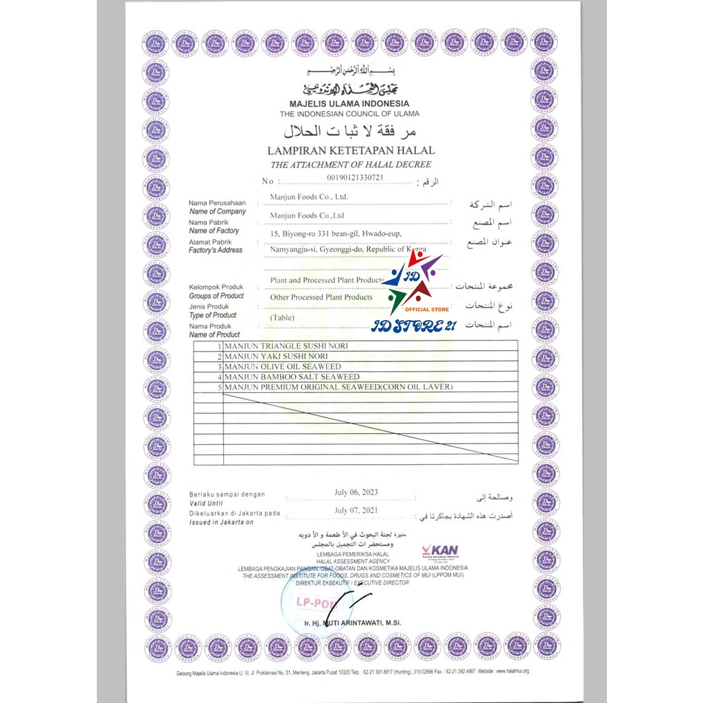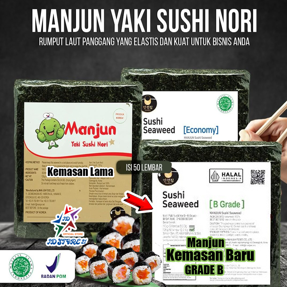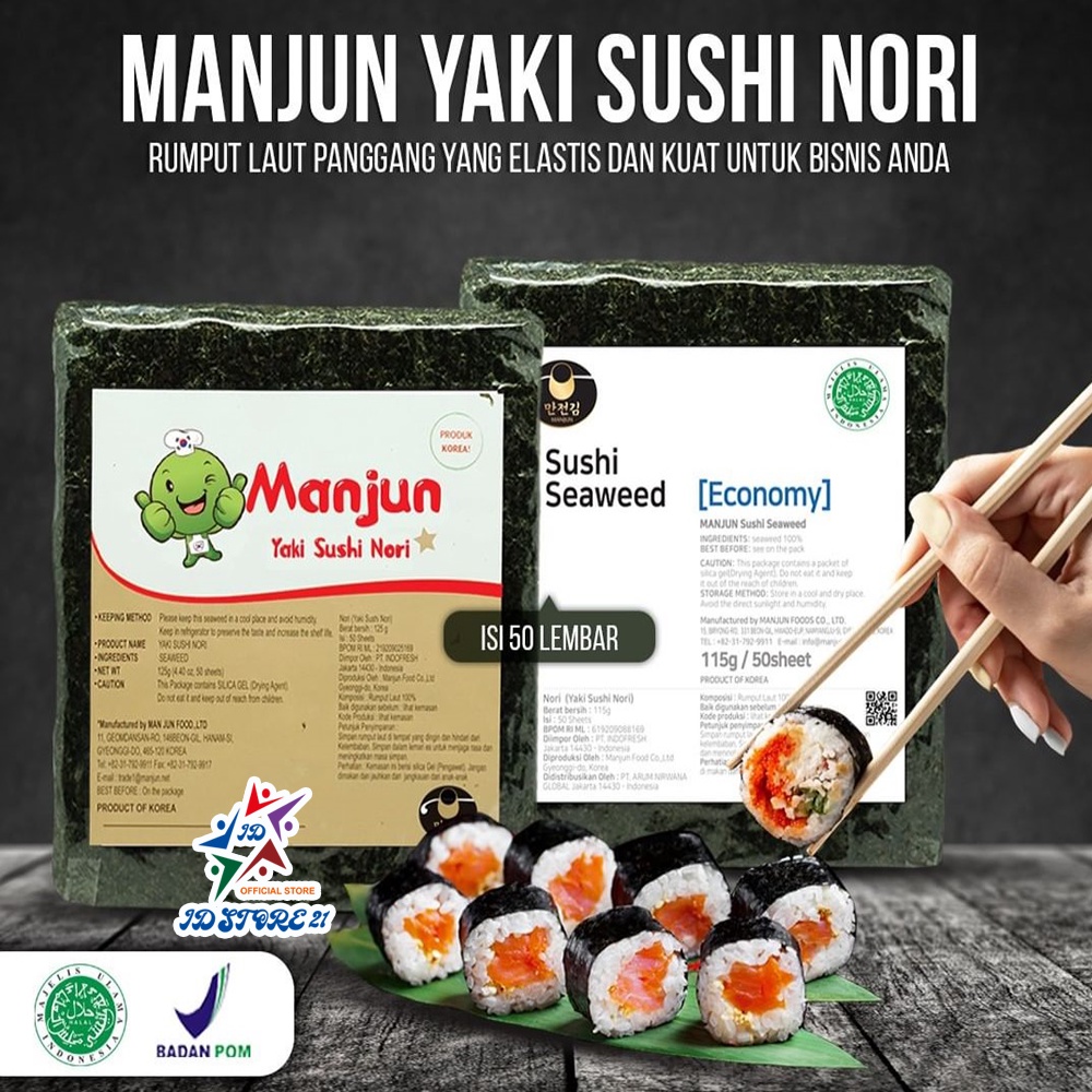MANJUN SUSHI NORI KIMBAB 50 SHEET HALAL MUI │ NORI GIMBAB IMPORT LEMBAR RUMPUT LAUT PRODUCT OF KOREA