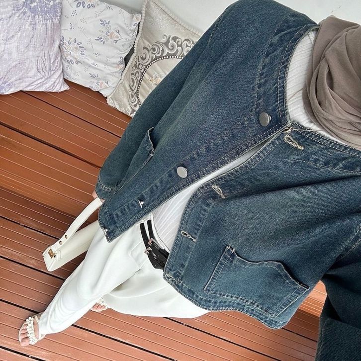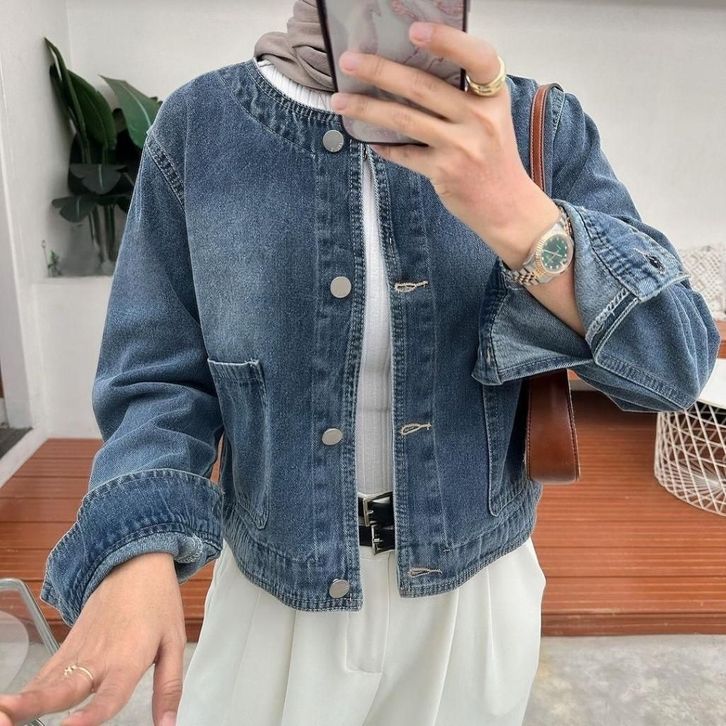 aket jeans wanita Exxo Clara Cardi jaket wanita leher sanghai kekinian Jaket jeans wanita oversize jaket jeans cewek