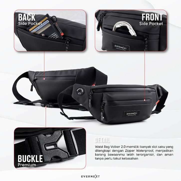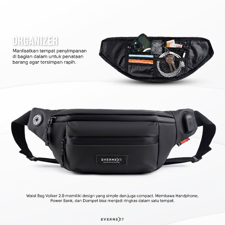 Evernext - Tas Selempang Anti Air Waist Bag Waterproof Volker Sling Bag Pria Anti Air Waist Bag Distro Pria FREE ONGKIR