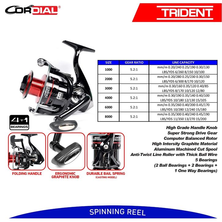 Reel Spinning CORDIAL TRIDENT Pilih Ukuran