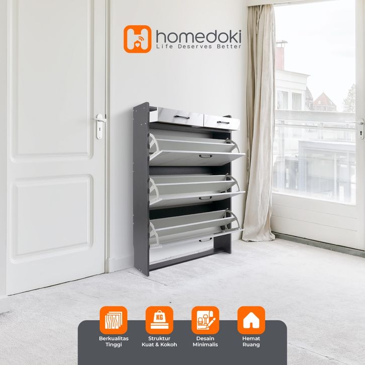 Homedoki Lemari Sepatu Kayu / Rak Sepatu / Shoes Kabinet Multifungsi / Lemari Kabinet Kayu Minimalis