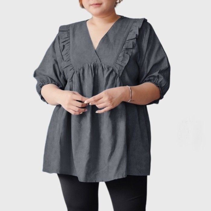ATASAN WANITA VNECK BIG SIZE XXL - DARK GREY