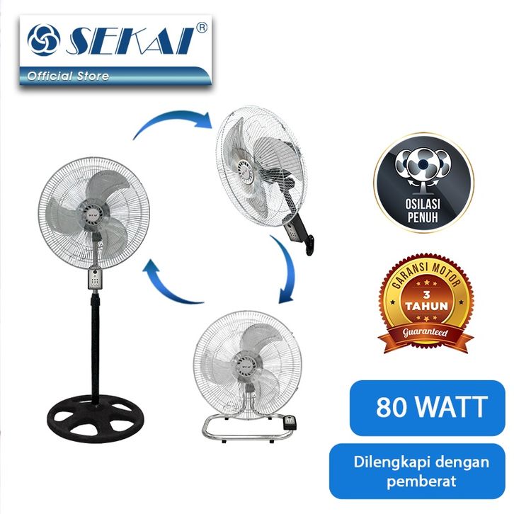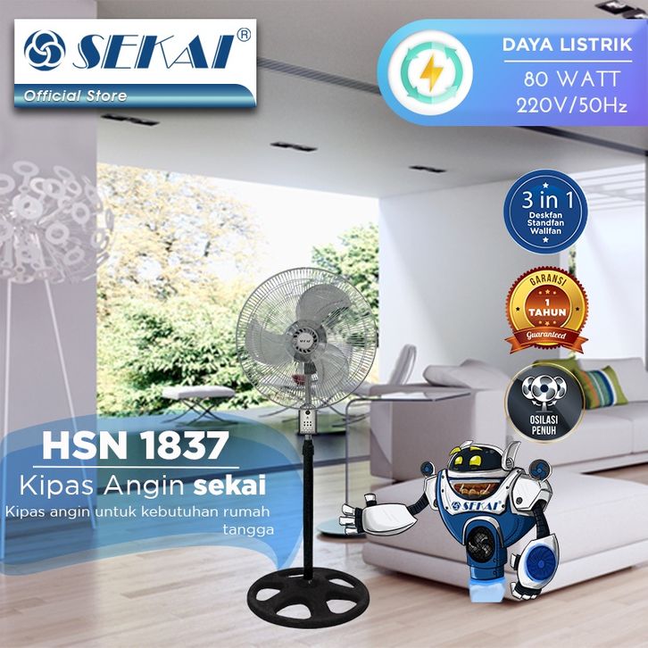 SEKAI Kipas Angin 3 In 1 Remote Tornado / Kipas Angin Berdiri / Kipas Angin Dinding / Kipas Angin Meja - HSN 1837 RI