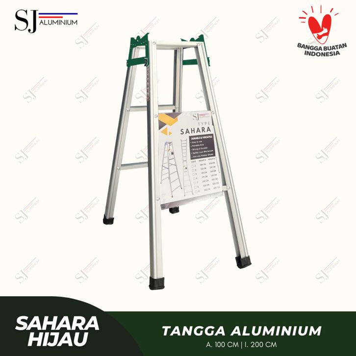 Tangga Lipat Aluminium Sahara Hijau Jumbo Ladder Multifungsi 200KG - Ukuran 1 M / 1,25 M / 1,5 M / 1,75 M / 2 M