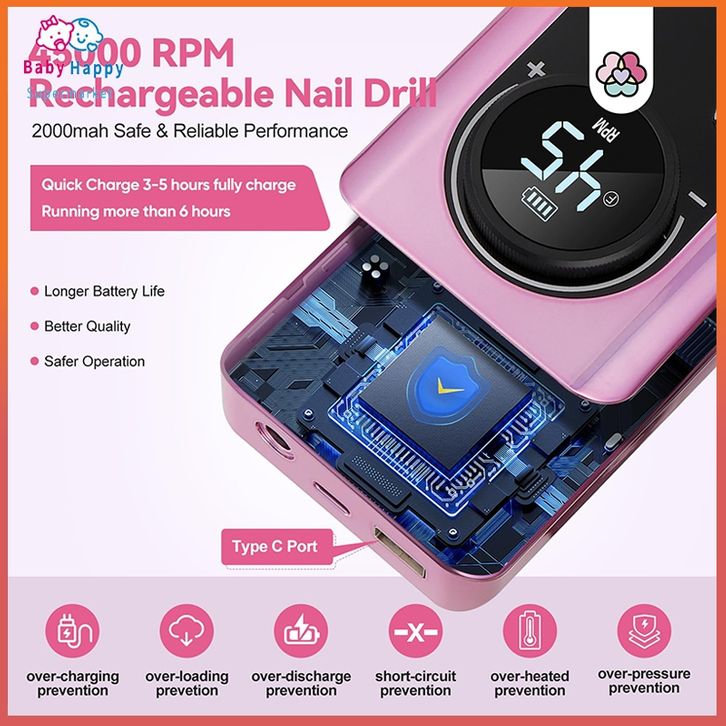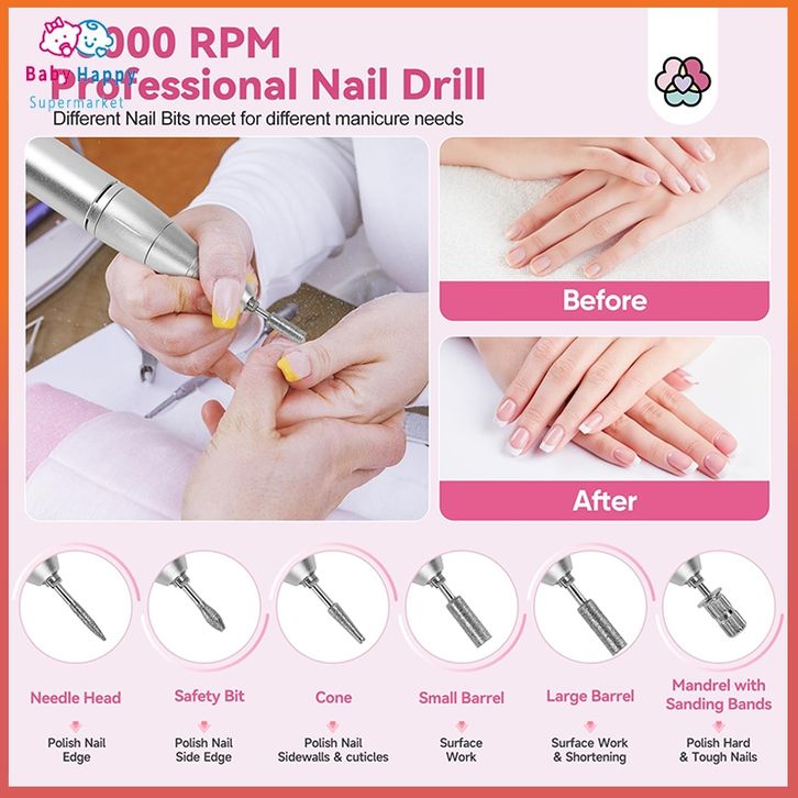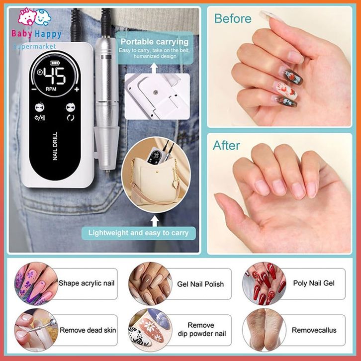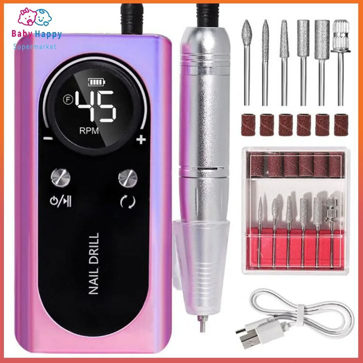 Mesin Bor Kuku Elektrik 45000RPM Kikir Kuku Portabel Isi Ulang Kit Bor Kuku Elektrik DIY