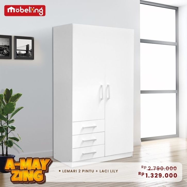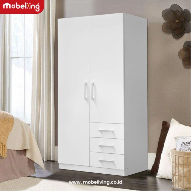 Mobeliving - Lily 2D Furniture Lemari 2 Pintu Full Putih Rak