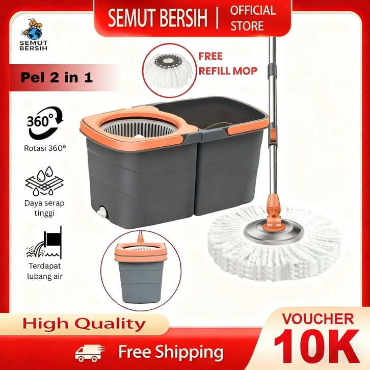 Pel 2 in 1 Mini Alat Pel Lantai Peras Otomatis Ember Terpisah Dengan Kain Mikrofiber Daya Serap Tinggi