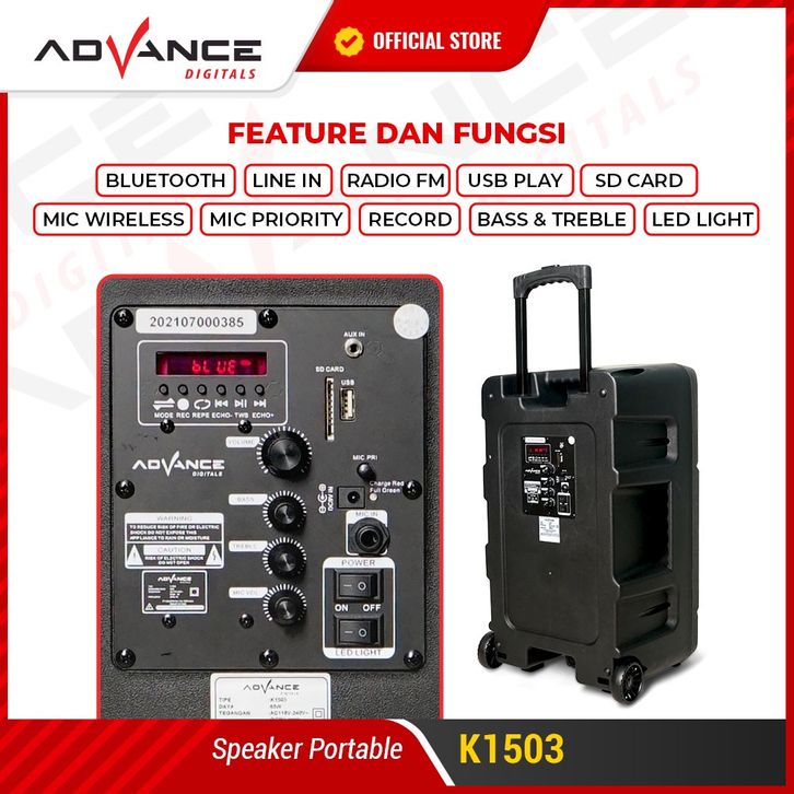 ADVANCE K1503 SPEAKER MEETING BLUETOOTH SALON AKTIF 15" GRATIS 2 MIC KAROKE BATREI BESAR RGB LIGHT