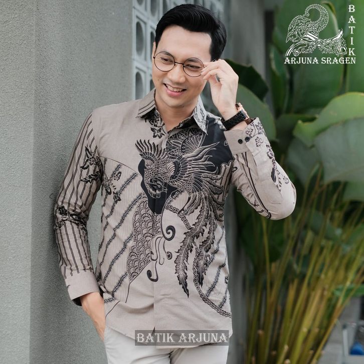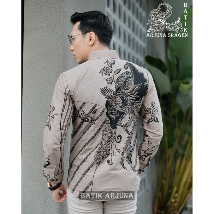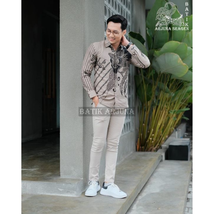 kemeja batik pria baju batik atasan batik lengan panjang modern slim fit kasual dan kerja cowok hem coklat